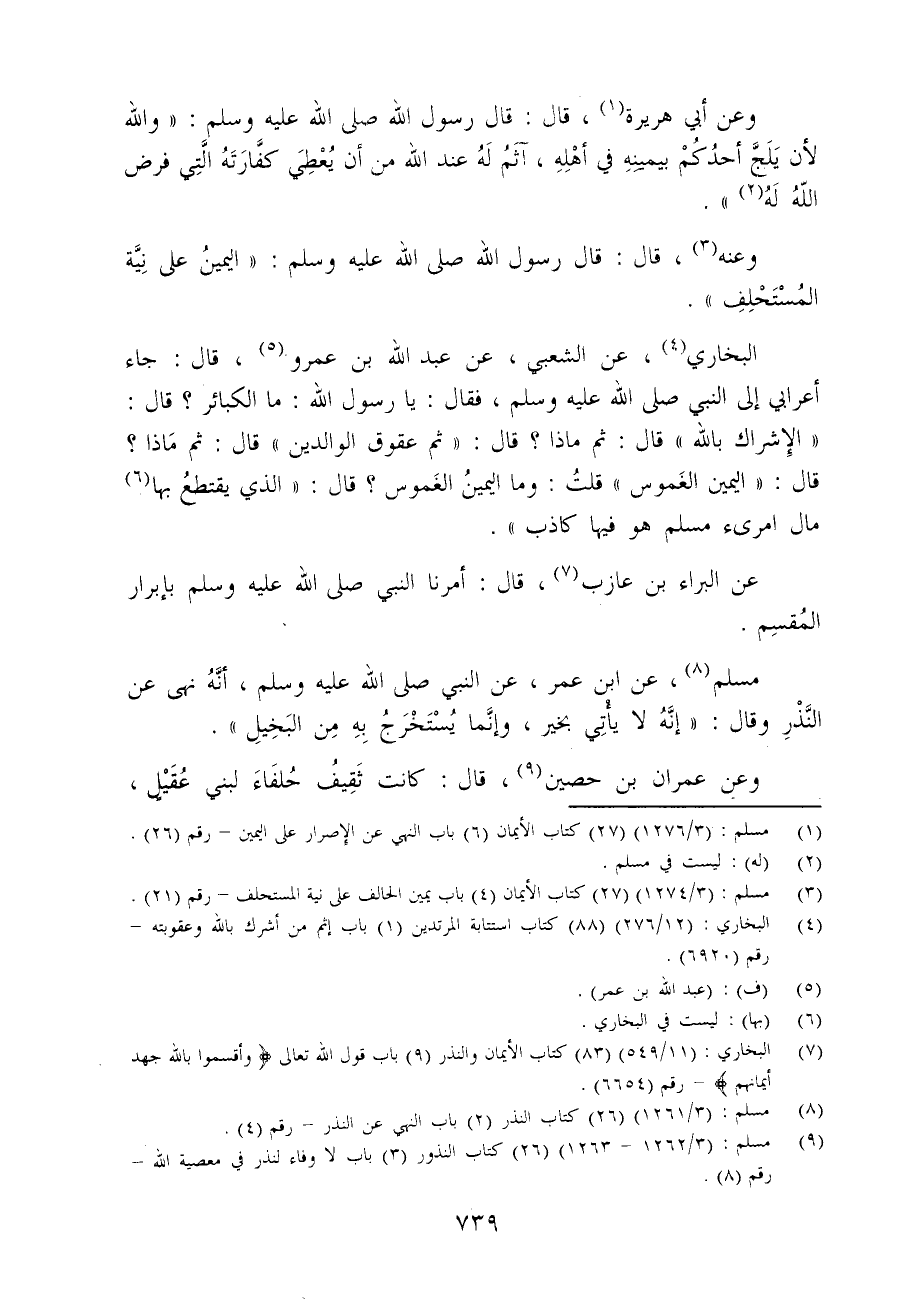 (¬7) البخاري: (11/ 549) (83) كتاب الأيمان والنذر (9) باب قول الله تعالى {وَأَقْسَمُوا بِاللَّهِ جَهْدَ أَيْمَانِهِمْ} رقم (6654).