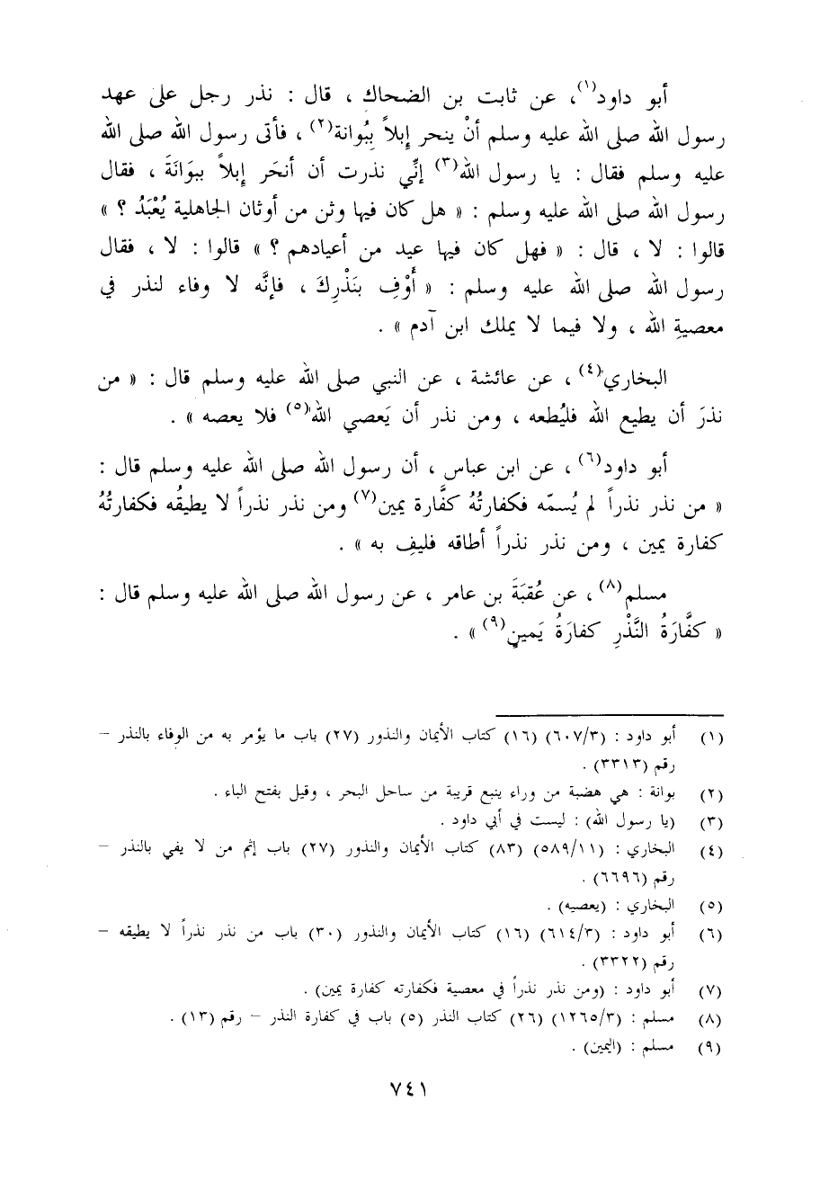 (¬1) أبو داود: (3/ 607) (16) كتاب الأيمان والنذور (27) باب ما يؤمر به من الوفاء بالنذر رقم (3313).