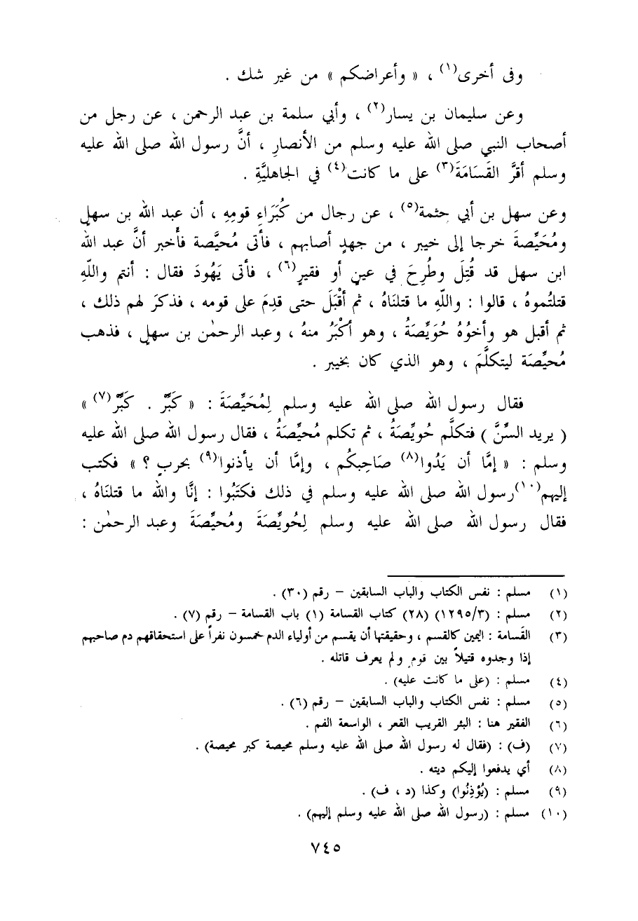 (¬2) مسلم: (3/ 1295) (28) كتاب القسامة (1) باب القسامة - رقم (7).