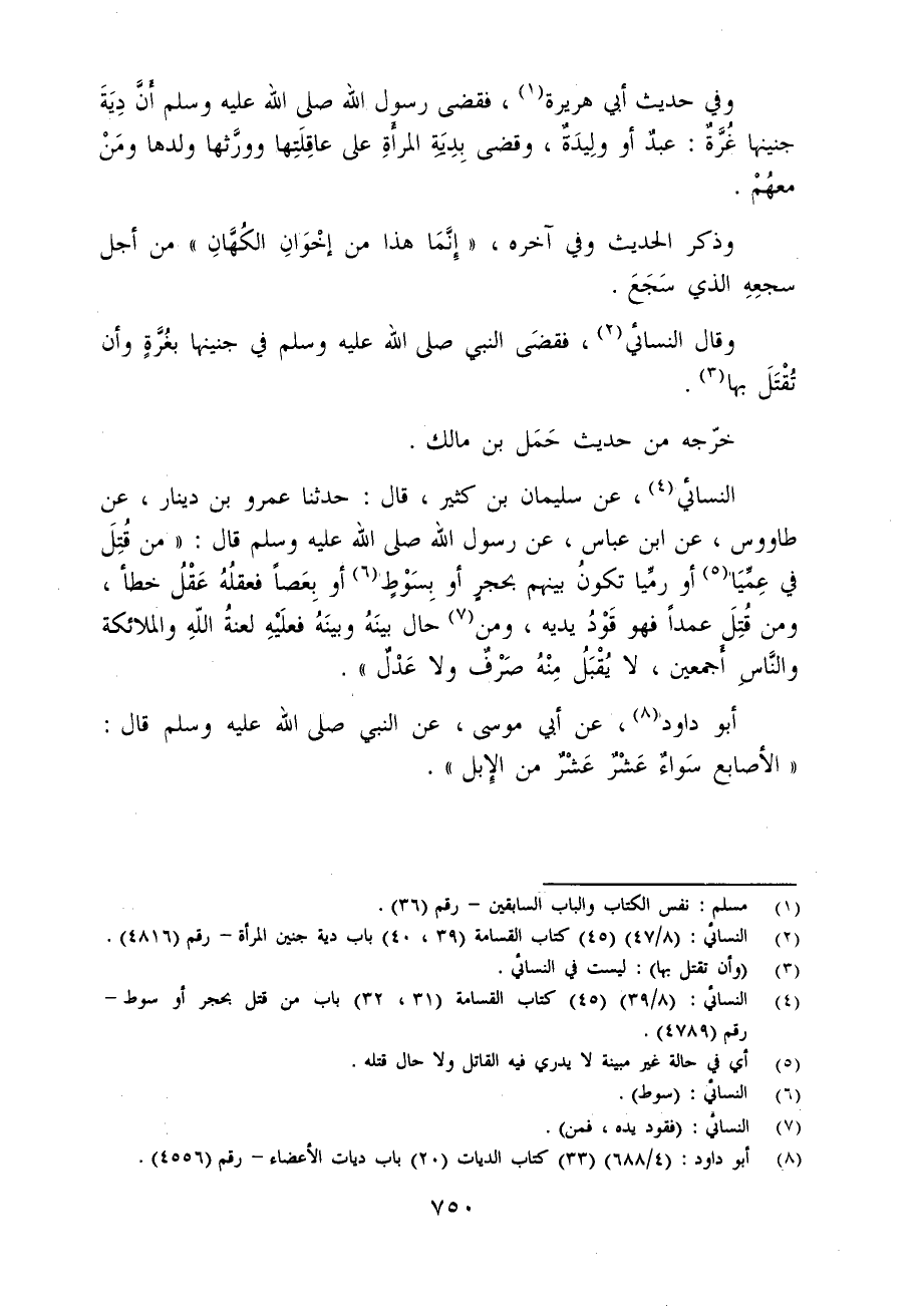 (¬2) النسائي: (8/ 47) (45) كتاب القسامة (39، 40) باب دية جنين المرأة - رقم (4816).