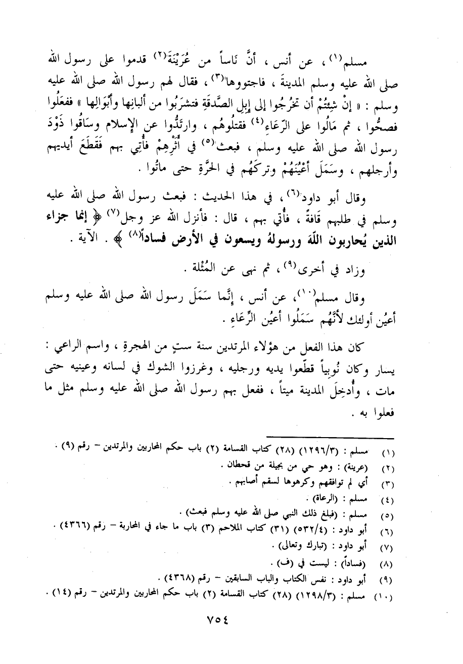 (¬10) مسلم: (3/ 1298) (28) كتاب القسامة (2) باب حكم المحاربين والمرتدين - رقم (14).