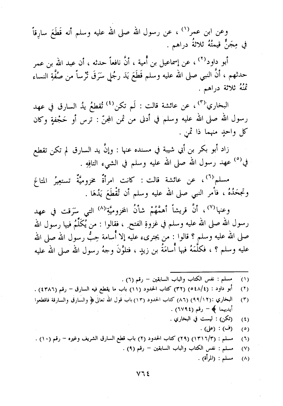 (¬3) البخاري: (12/ 99) (86) كتاب الحدود (13) باب قول الله تعالى {وَالسَّارِقُ وَالسَّارِقَةُ فَاقْطَعُوا أَيْدِيَهُمَا} - رقم (6794).