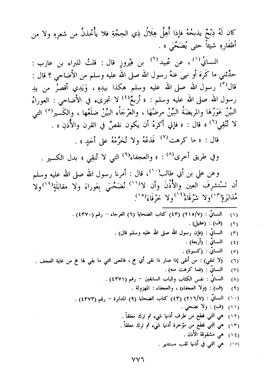(¬1) النسائي: (7/ 215) (43) كتاب الضحايا (6) العرجاء - رقم (4370).