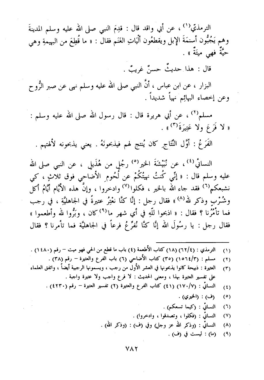 (¬2) مسلم: (3/ 1564) (35) كتاب الأضاحي (6) باب الفرع والعتيرة - رقم (38).