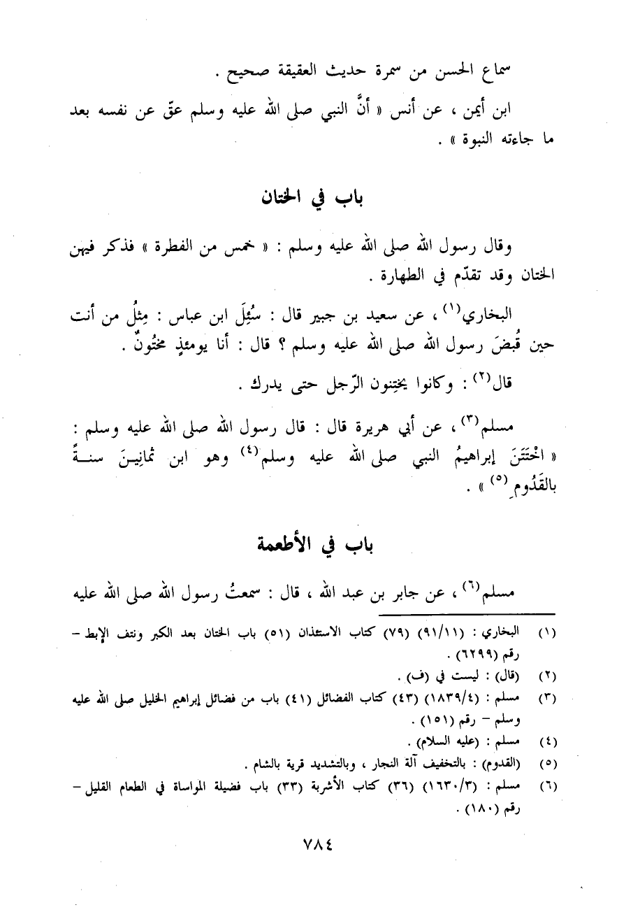 (¬1) البخاري: (11/ 91) (79) كتاب الإستئذان (51) باب الختان بعد الكبر ونتف الابط - رقم (6299).