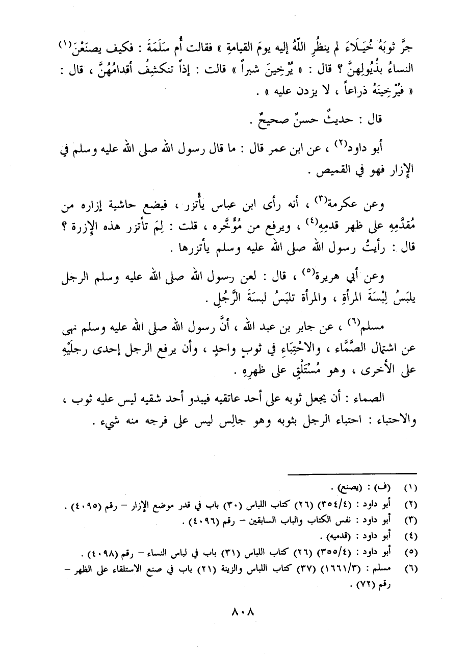 (¬2) أبو داود: (4/ 354) (26) كتاب اللباس (30) باب في قدر موضع الإزار - رقم (4095).