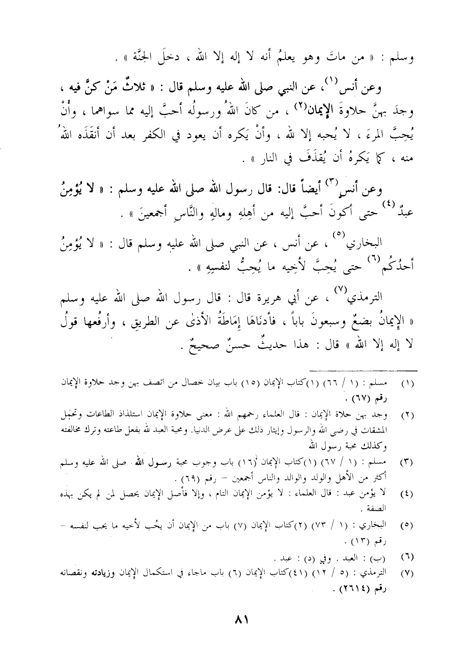 (¬1) مسلم: (6611) (1) كتاب الإيمان (15) باب بيان خصال من اتصف بهن حلاوة الإيمان رقم (67).