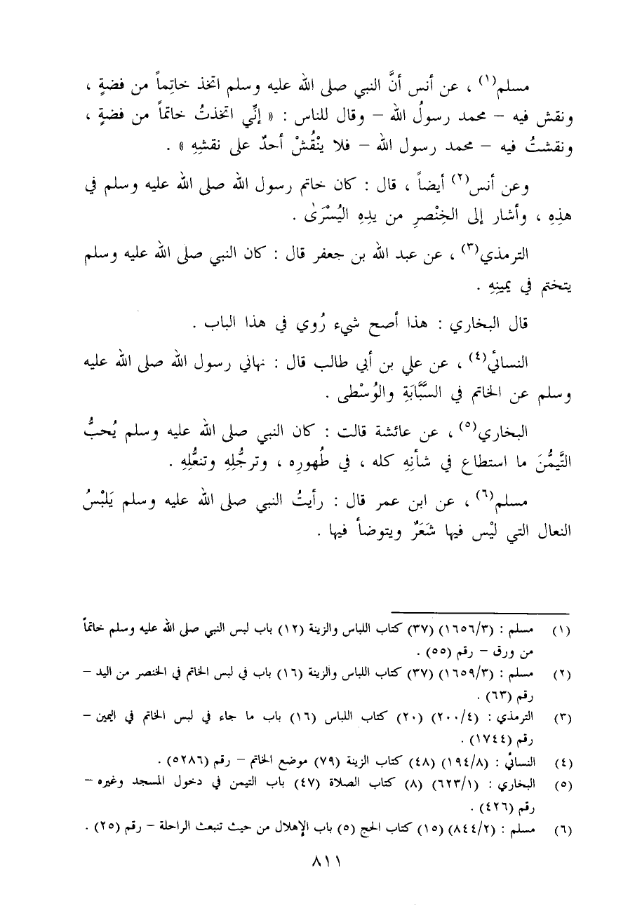 (¬1) مسلم: (3/ 1656) (37) كتاب اللباس والزينة (12) باب لبس النبي - صلى الله عليه وسلم - خاتمًا من ورق - رقم (55).