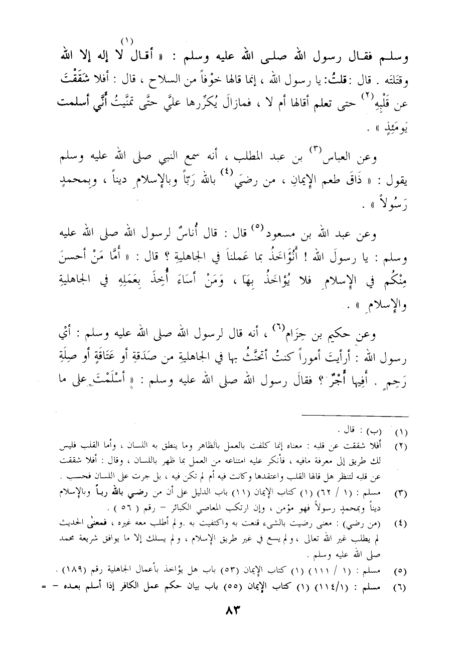 (¬5) مسلم (1/ 111) (1) كتاب الإيمان (53) باب هل يؤاخذ بأعمال الجاهلية رقم (189).