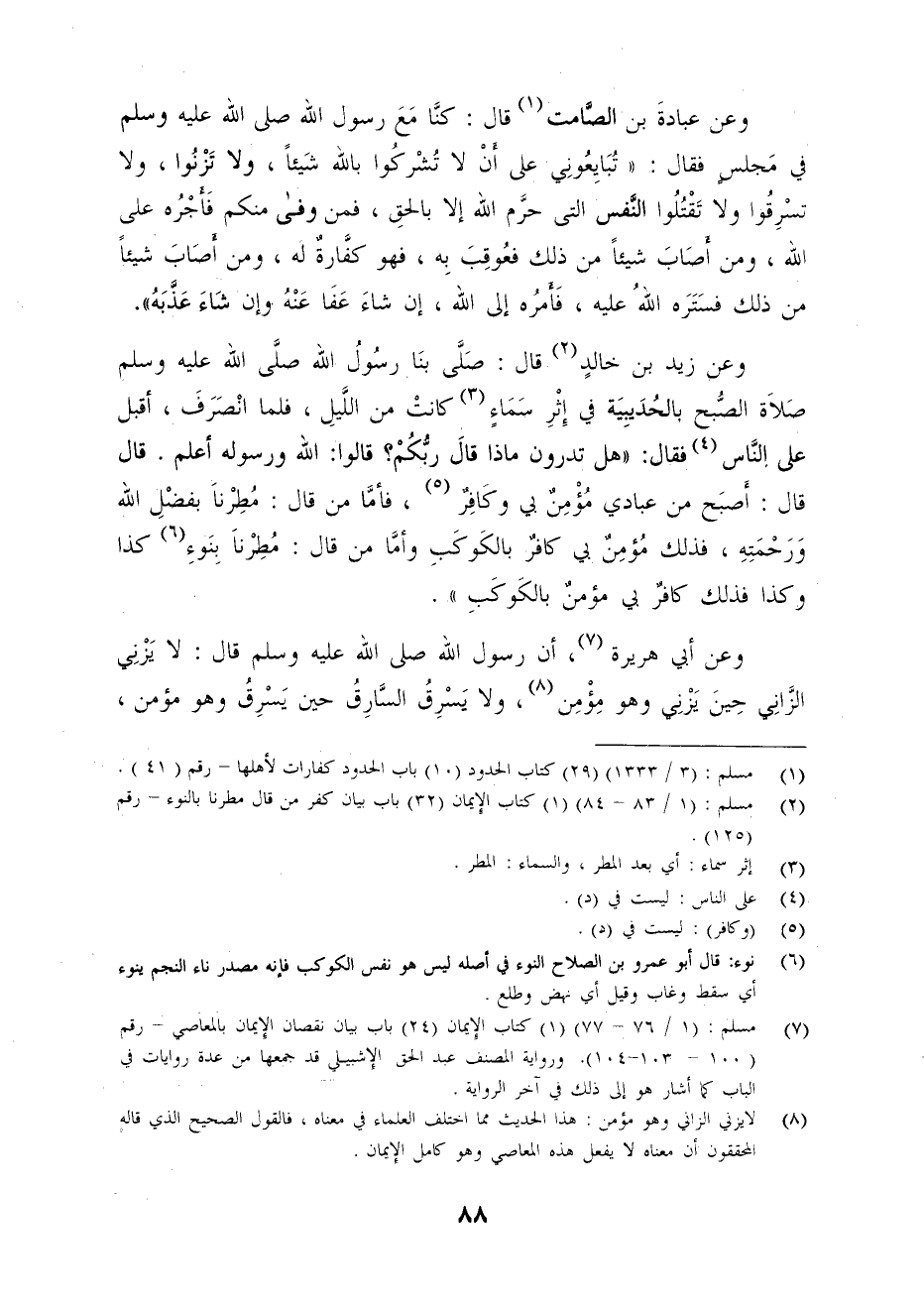 (¬2) مسلم: (1/ 83 - 84) (1) كتاب الإيمان (32) باب يان كفر من قال مطرنا بالنوء - رقم (125).