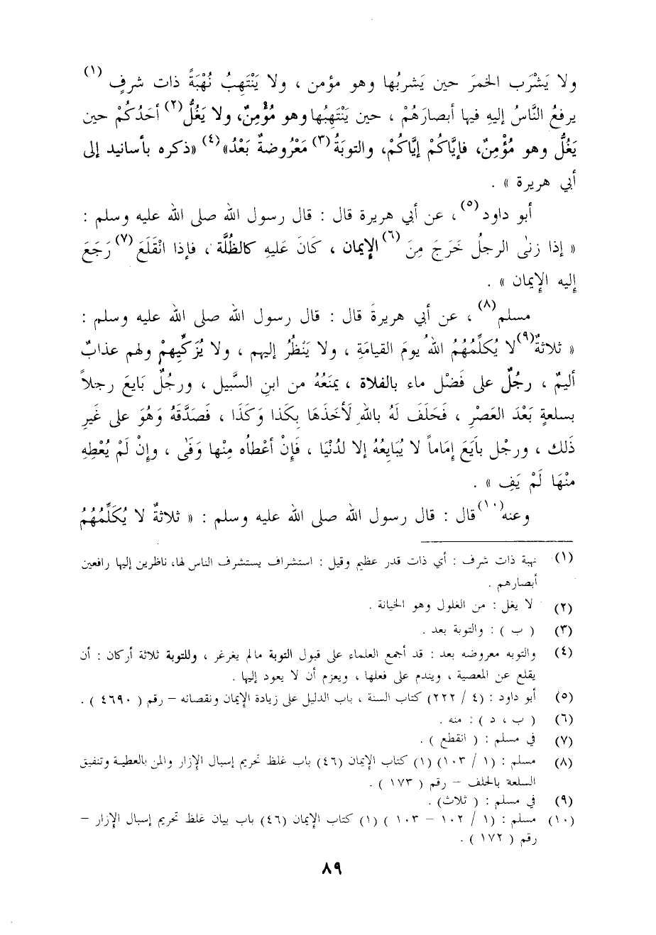 (¬8) مسلم: (1/ 103) (1) كتاب الإيمان (46) باب غلظ تحريم إسبال الإزار: والمن، بالعطية وتنفيق السلعة بالحلف - رقم (173).