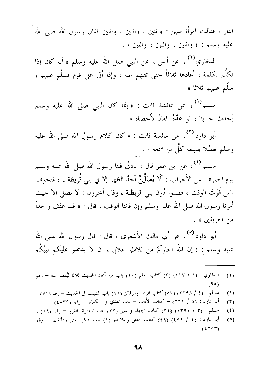 (¬1) البخاري: (1/ 227) (3) كتاب العلم (30) باب من أعاد الحديث ثلاثا ليُفهم عنه - رقم (95).