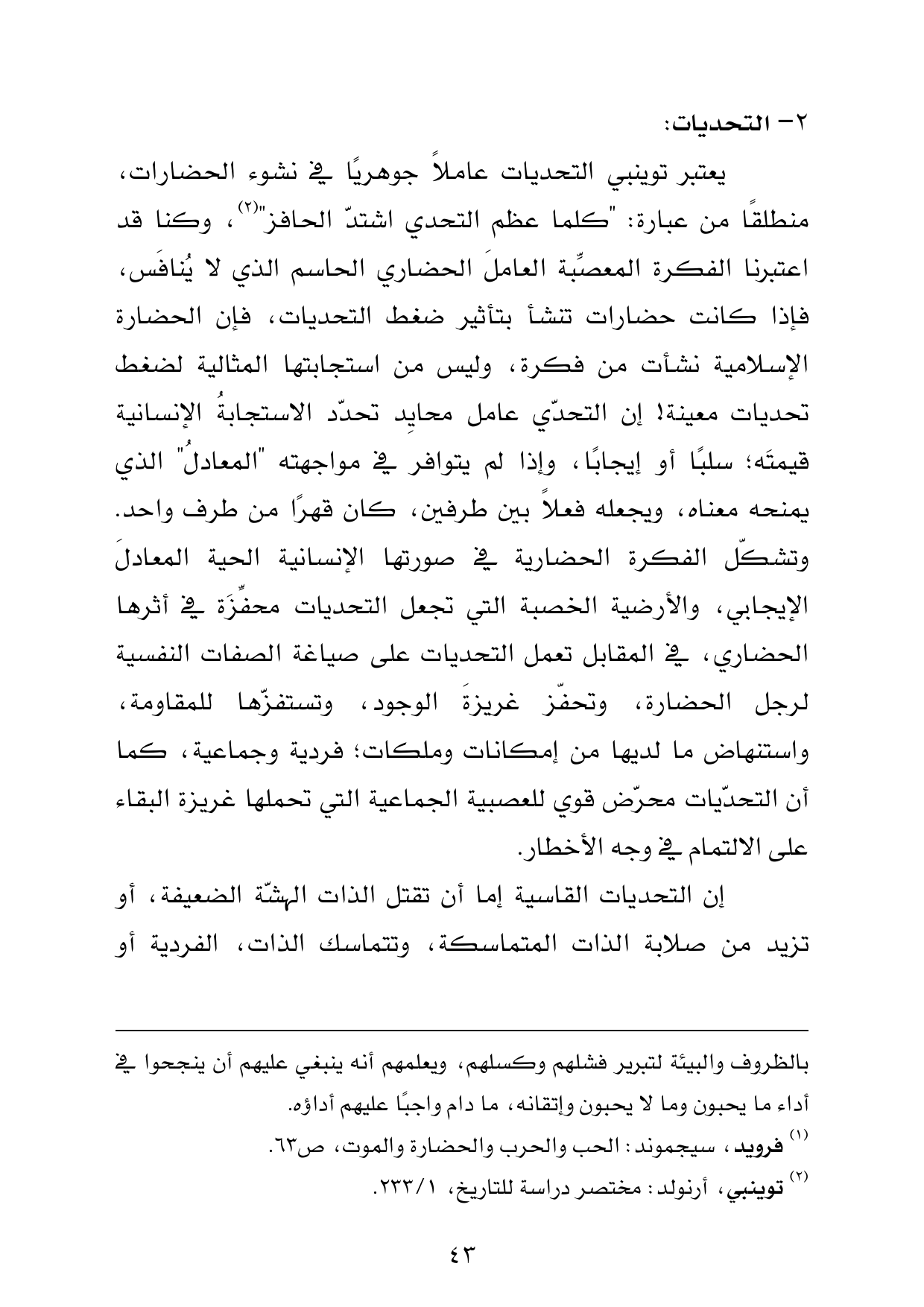 (¬1) توينبي، أرنولد: مختصر دراسة للتاريخ، 1/ 233.
