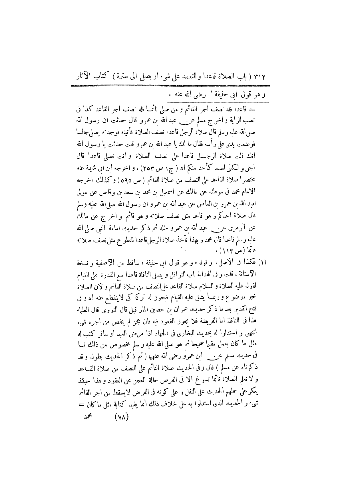 ١١٧ - مُحَمَّدٌ، قَالَ: أَخْبَرَنَا أَبُو حَنِيفَةَ، عَنْ حَمَّادٍ، عَنْ سَعِيدِ بْنِ جُبَيْرٍ، قَالَ: «صَلَاةُ الرَّجُلِ قَاعِدًا عَلَى مِثْلِ نِصْفِ صَلَاةِ الرَّجُلِ قَائِمًا» وَهُوَ قَوْلُ أَبِي حَنِيفَةَ رَضِيَ اللَّهُ عَنْهُ