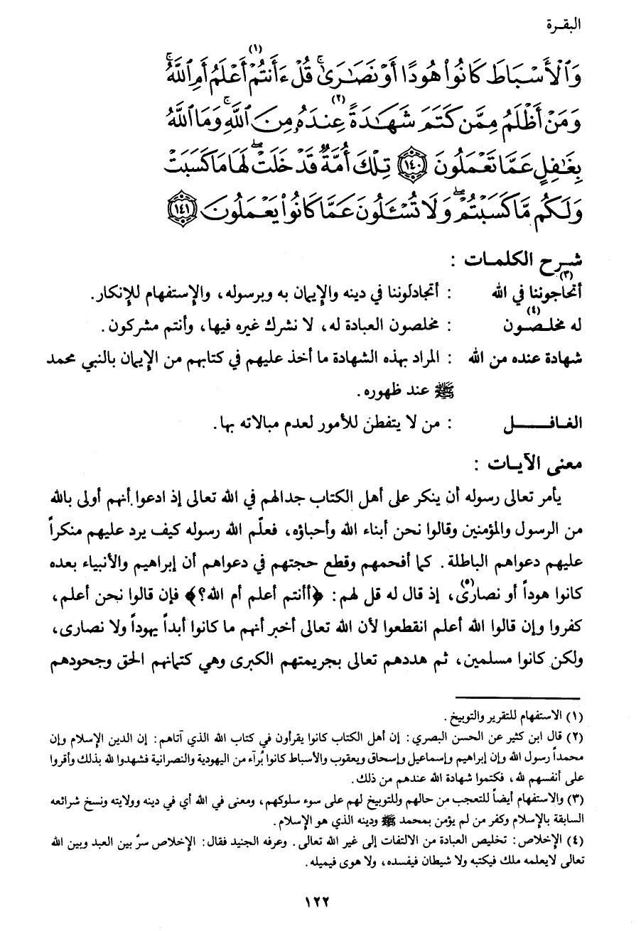 وَالأَسْبَاطَ كَانُوا هُوداً أَوْ نَصَارَى قُلْ أَأَنْتُمْ1 أَعْلَمُ أَمِ اللهُ وَمَنْ أَظْلَمُ مِمَّنْ كَتَمَ شَهَادَةً2 عِنْدَهُ مِنَ اللهِ وَمَا اللهُ بِغَافِلٍ عَمَّا تَعْمَلُونَ (140) تِلْكَ أُمَّةٌ قَدْ خَلَتْ لَهَا مَا كَسَبَتْ وَلَكُمْ مَا كَسَبْتُمْ وَلا تُسْأَلونَ عَمَّا كَانُوا يَعْمَلُون (141) }