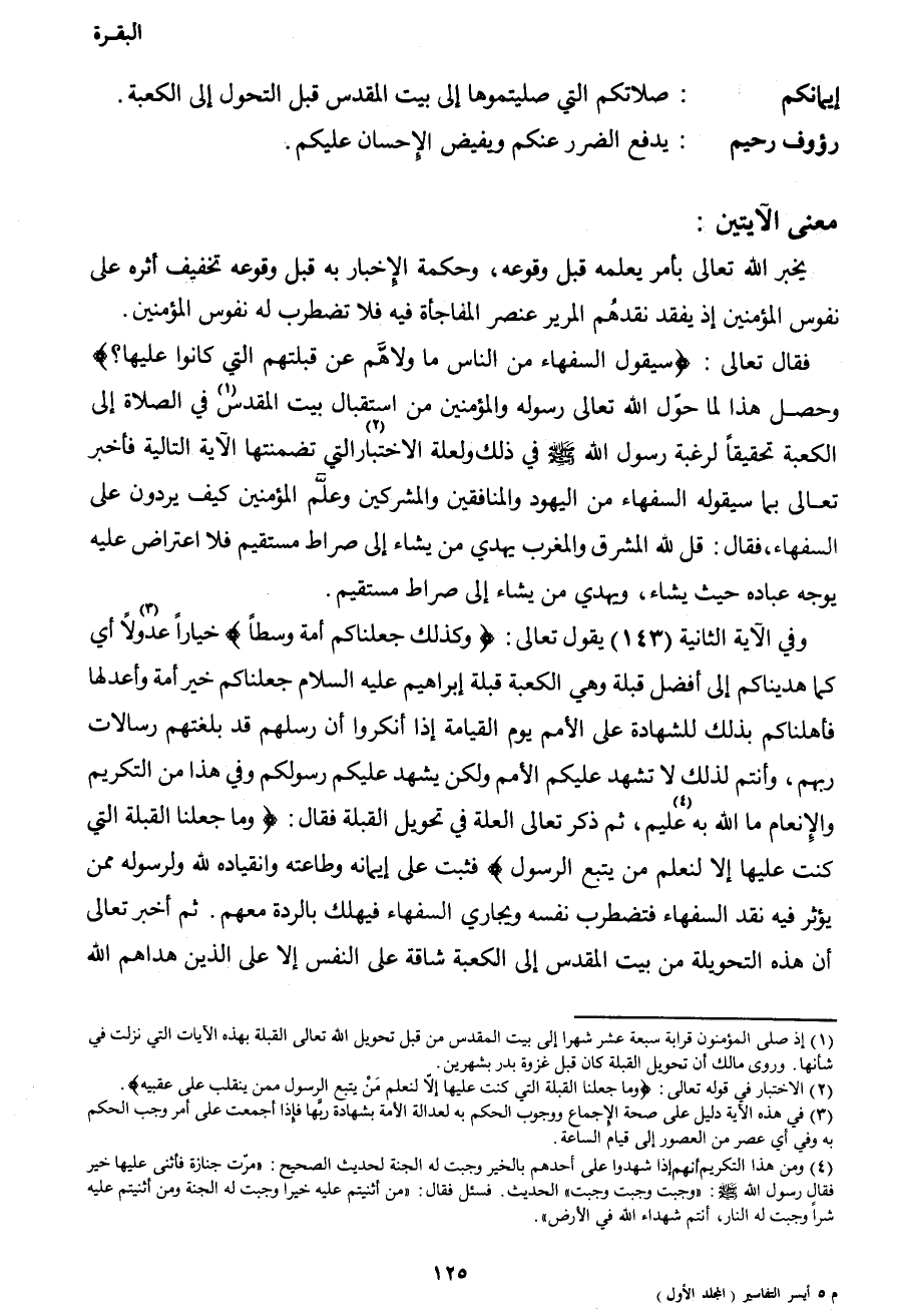 1 إذ صلى المؤمنون قرابة سبعة عشر شهراً إلى بيت المقدس من قبل تحويل الله تعالى القبلة بهذه الآيات التي نزلت في شانها. وروى مالك أن تحويل القبلة كان قبل غزوة بدر بشهرين.