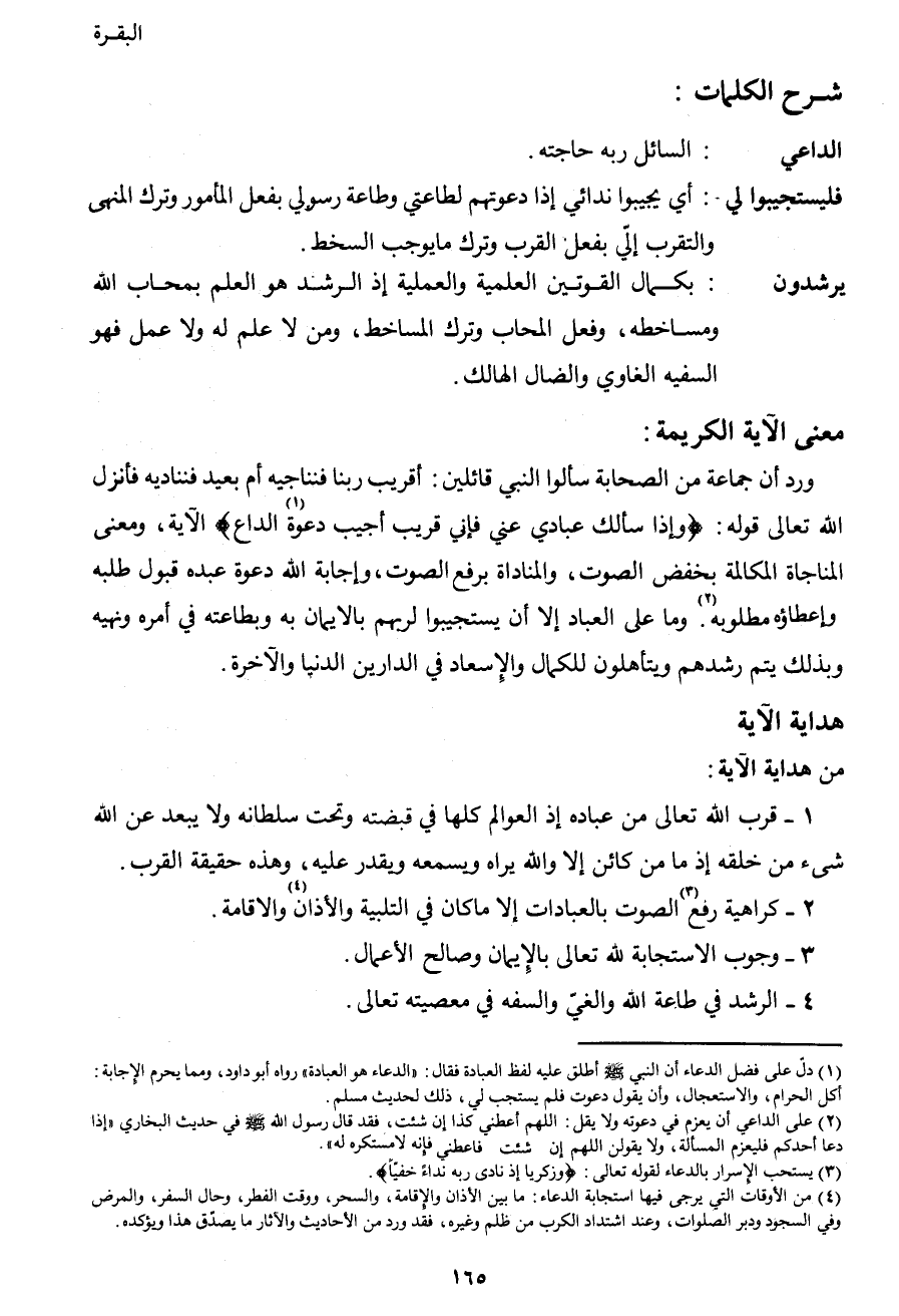 ورد أن جماعة من الصحابة سألوا النبي قائلين: أقريب ربنا فنناجيه أم بعيد فنناديه فأنزل الله تعالى قوله: {وَإِذَا سَأَلَكَ عِبَادِي عَنِّي فَإِنِّي قَرِيبٌ أُجِيبُ دَعْوَةَ1 الدَّاعِ} الآية، ومعنى المناجاة: المكالمة بخفض الصوت، والمناداة برفع الصوت، وإجابة الله دعوة عبده قبول طلبه وإعطاؤه مطلوبه2. وما على العباد إلا أن يستجيبوا لربهم بالإيمان به وبطاعته في أمره ونهيه، وبذلك يتم رشدهم ويتأهلون للكمال والإسعاد في الدارين الدنيا والآخرة.