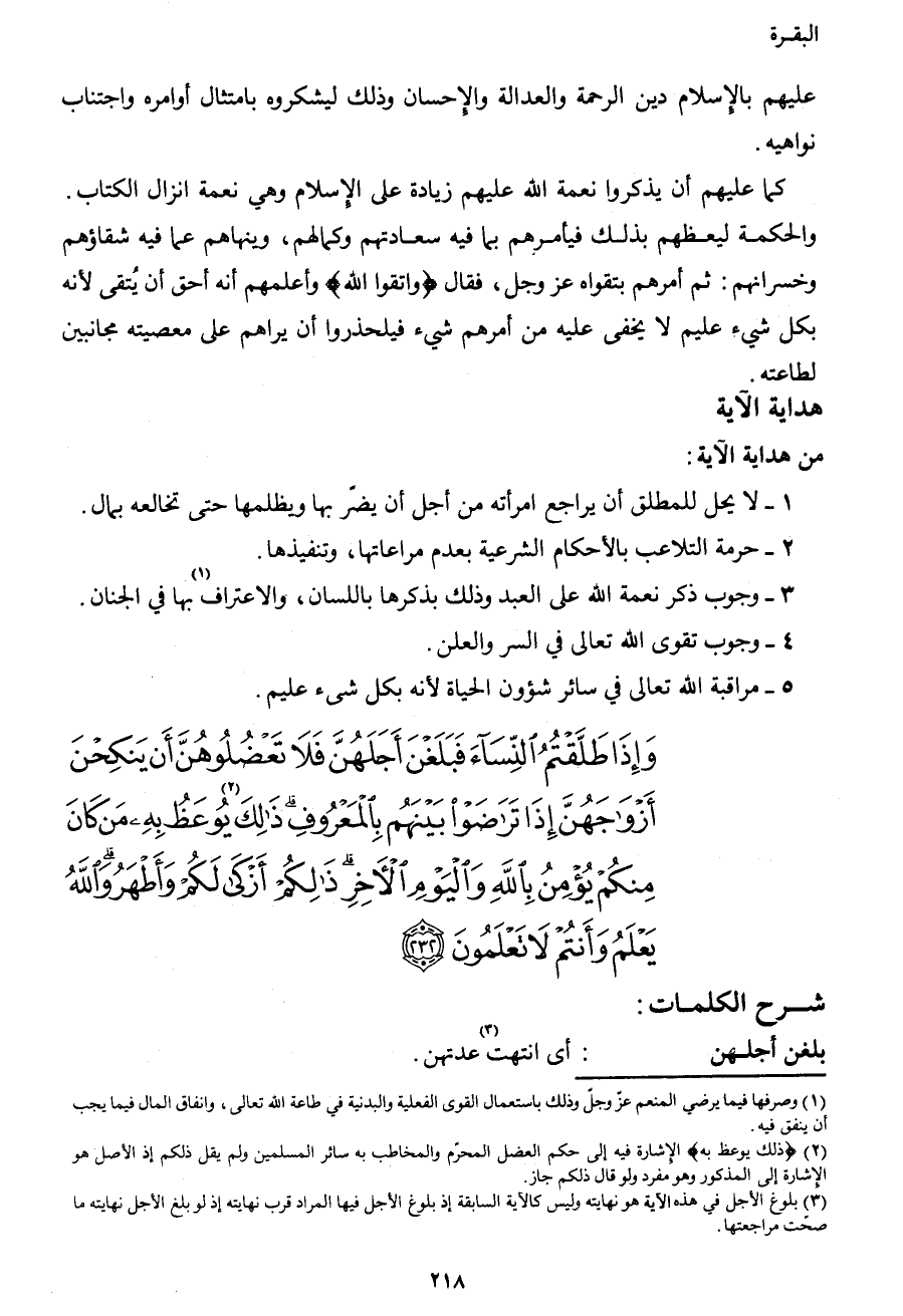 3 بلوغ الأجل في هذه الآية هو نهايته وليس كالآية السابقة، إذ بلوغ الأجل فيها المراد: قرب نهايته، إذ لو بلغ الأجل نهايته ما كان صحت مراجعتها.
