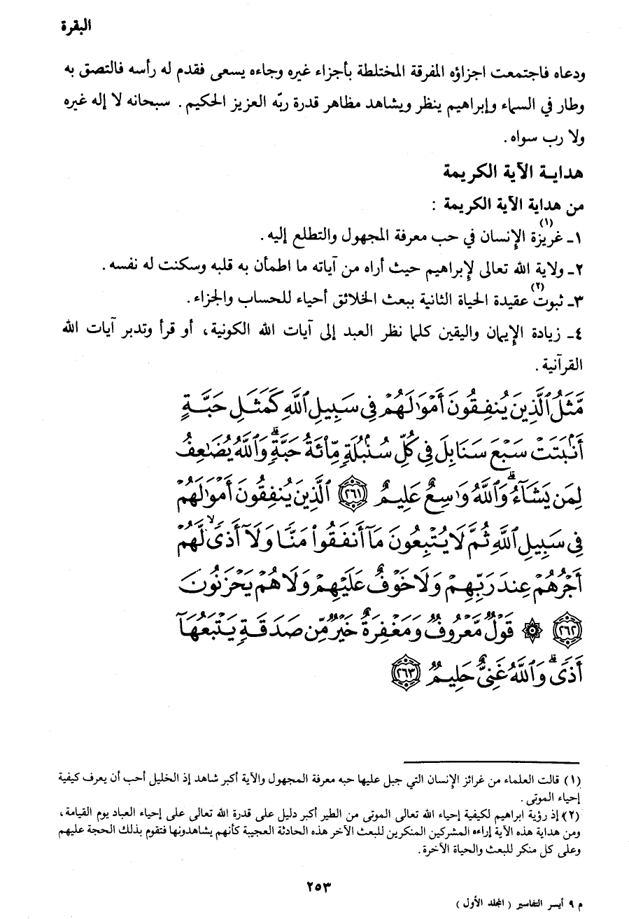 {مَثَلُ الَّذِينَ يُنْفِقُونَ أَمْوَالَهُمْ فِي سَبِيلِ اللهِ كَمَثَلِ حَبَّةٍ أَنْبَتَتْ سَبْعَ سَنَابِلَ فِي كُلِّ سُنْبُلَةٍ مِائَةُ حَبَّةٍ وَاللهُ يُضَاعِفُ لِمَنْ يَشَاءُ وَاللهُ وَاسِعٌ عَلِيمٌ (261) الَّذِينَ يُنْفِقُونَ أَمْوَالَهُمْ فِي سَبِيلِ اللهِ ثُمَّ لا يُتْبِعُونَ مَا أَنْفَقُوا مَنّاً وَلا أَذىً لَهُمْ أَجْرُهُمْ عِنْدَ رَبِّهِمْ وَلا خَوْفٌ عَلَيْهِمْ وَلا هُمْ يَحْزَنُونَ (262) قَوْلٌ مَعْرُوفٌ وَمَغْفِرَةٌ خَيْرٌ مِنْ صَدَقَةٍ يَتْبَعُهَا أَذىً وَاللهُ غَنِيٌّ حَلِيمٌ (263) }