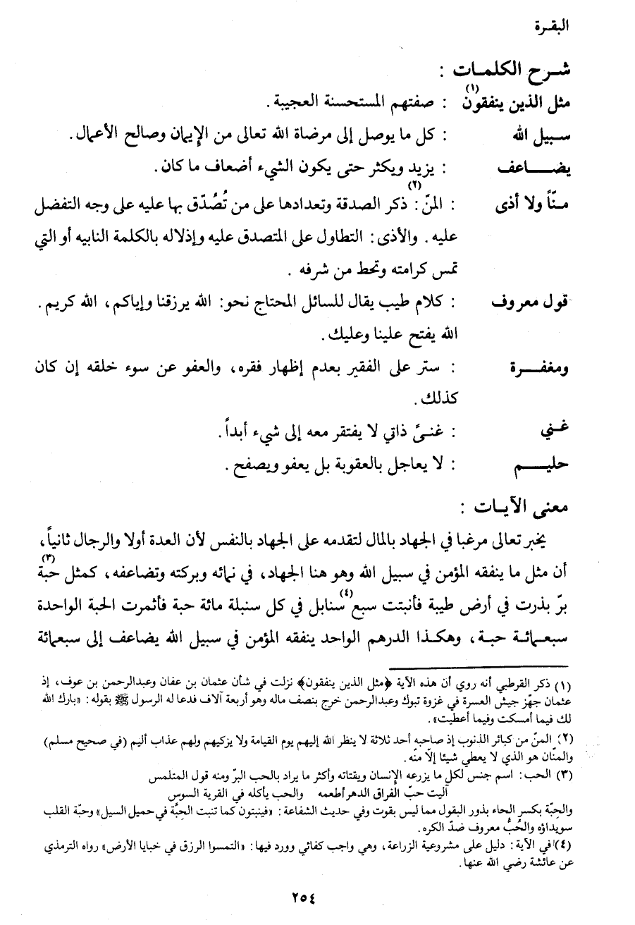 {مَنّاً وَلا أَذىً} : المن2: ذكر الصدقة وتعدادها على من تصدق بها عليه على الوجه التفضل عليه. والأذى: التطاول على المتصدق عليه وإذلاله بالكلمة النابية أو التي تمس كرامته وتحط من شرفه.