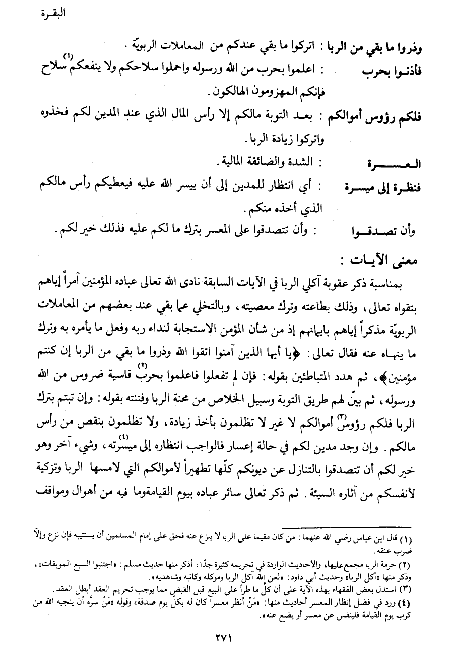1 قال ابن عباس رضي الله عنهما: "من كان مقيماً على الربى لا ينزع فحق على إمام المسلمين أن يستتيبه فإن نزع وإلا ضرب عنقه".