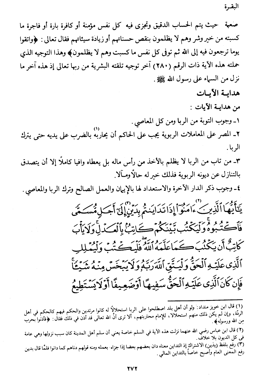 {يَا أَيُّهَا الَّذِينَ2 آمَنُوا إِذَا تَدَايَنْتُمْ بِدَيْنٍ3 إِلَى أَجَلٍ مُسَمّىً فَاكْتُبُوهُ وَلْيَكْتُبْ بَيْنَكُمْ كَاتِبٌ بِالْعَدْلِ وَلا يَأْبَ كَاتِبٌ أَنْ يَكْتُبَ كَمَا عَلَّمَهُ اللهُ فَلْيَكْتُبْ وَلْيُمْلِلِ الَّذِي عَلَيْهِ الْحَقُّ وَلْيَتَّقِ اللهَ رَبَّهُ وَلا يَبْخَسْ مِنْهُ شَيْئاً فَإِنْ كَانَ الَّذِي عَلَيْهِ الْحَقُّ سَفِيهاً أَوْ ضَعِيفاً أَوْ لا يَسْتَطِيعُ