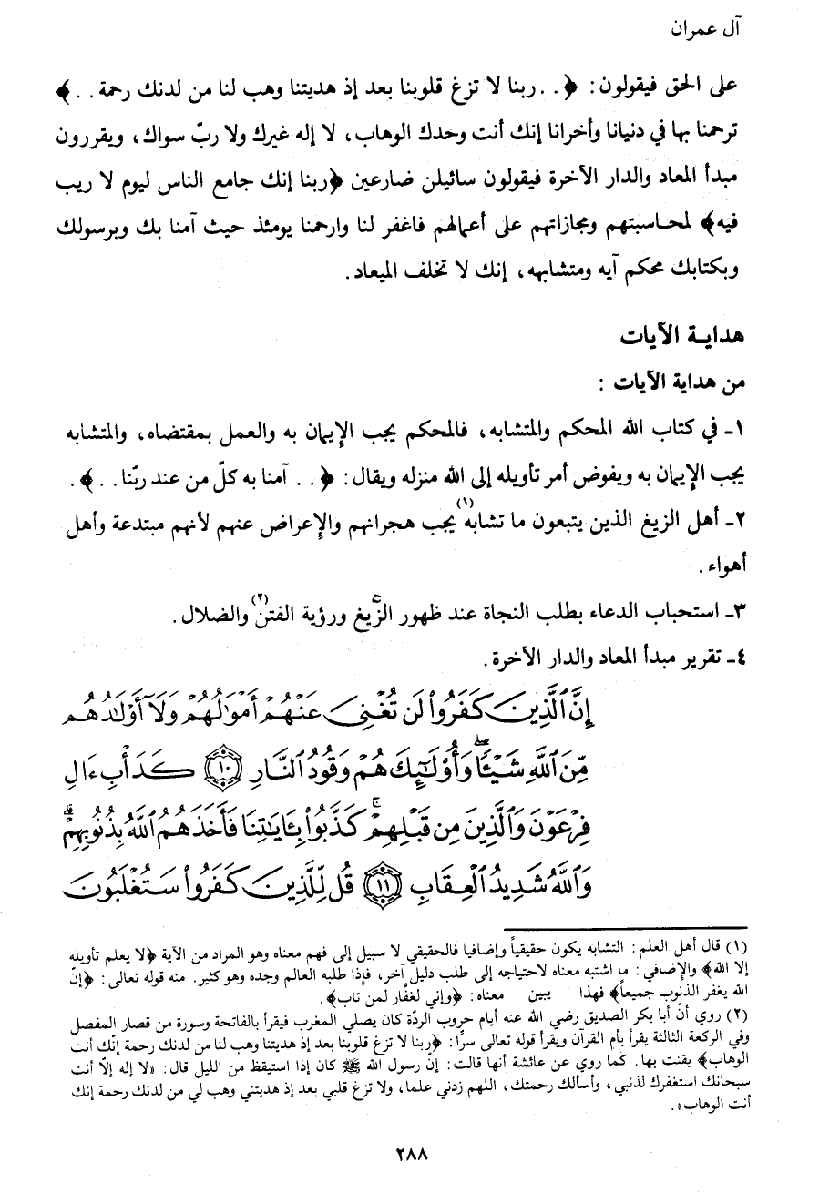 {إِنَّ الَّذِينَ كَفَرُوا لَنْ تُغْنِيَ عَنْهُمْ أَمْوَالُهُمْ وَلا أَوْلادُهُمْ مِنَ اللهِ شَيْئاً وَأُولَئِكَ هُمْ وَقُودُ النَّارِ (10) كَدَأْبِ آلِ فِرْعَوْنَ وَالَّذِينَ مِنْ قَبْلِهِمْ كَذَّبُوا بِآيَاتِنَا فَأَخَذَهُمُ اللهُ بِذُنُوبِهِمْ وَاللهُ شَدِيدُ الْعِقَابِ (11) قُلْ لِلَّذِينَ كَفَرُوا سَتُغْلَبُونَ
