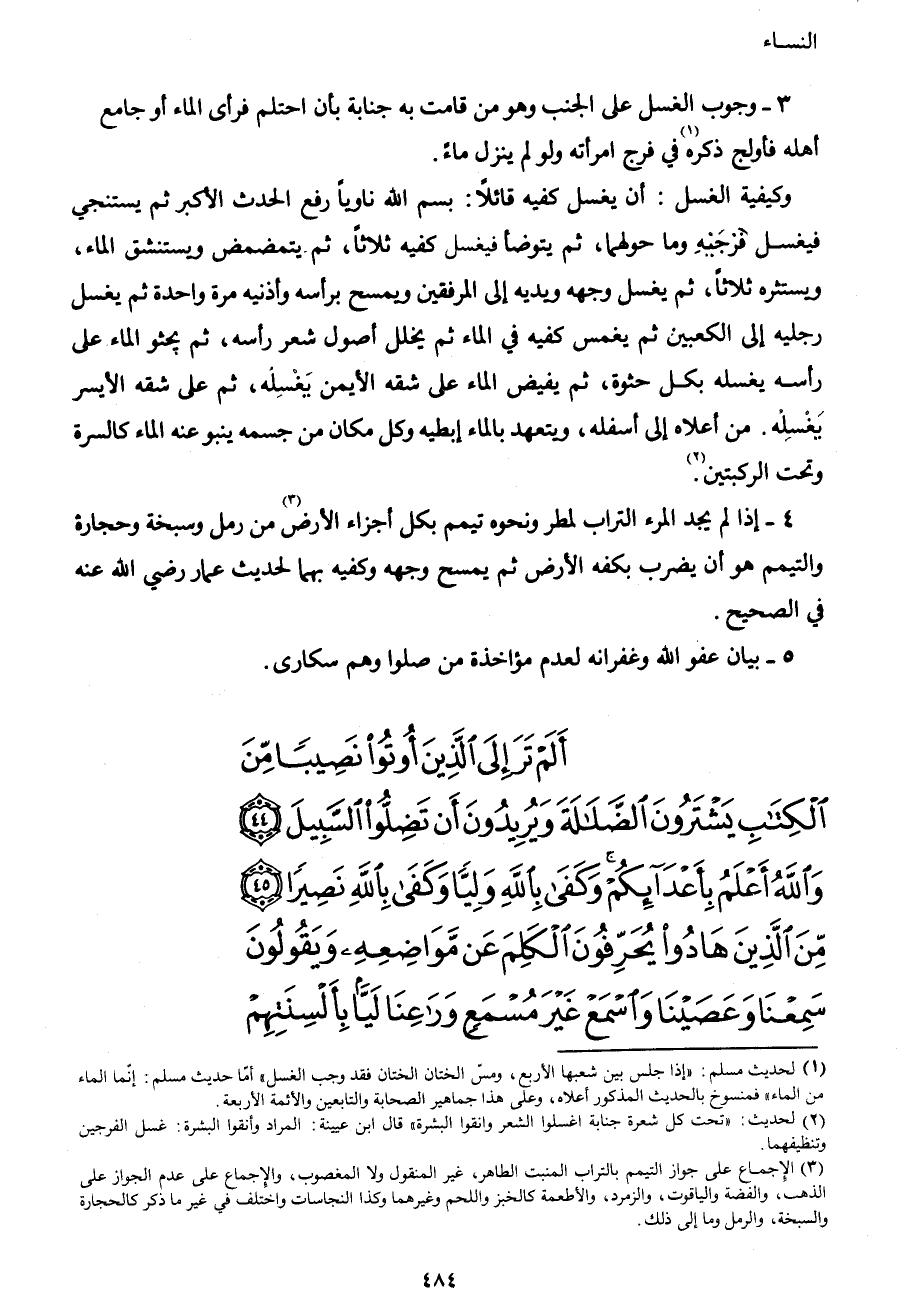 {أَلَمْ تَرَ إِلَى الَّذِينَ أُوتُوا نَصِيباً مِنَ الْكِتَابِ يَشْتَرُونَ الضَّلالَةَ وَيُرِيدُونَ أَنْ تَضِلُّوا السَّبِيلَ (44) وَاللهُ أَعْلَمُ بِأَعْدَائِكُمْ وَكَفَى بِاللهِ وَلِيّاً وَكَفَى بِاللهِ نَصِيراً (45) مِنَ الَّذِينَ هَادُوا يُحَرِّفُونَ الْكَلِمَ عَنْ مَوَاضِعِهِ وَيَقُولُونَ سَمِعْنَا وَعَصَيْنَا وَاسْمَعْ غَيْرَ مُسْمَعٍ وَرَاعِنَا لَيّاً بِأَلْسِنَتِهِمْ