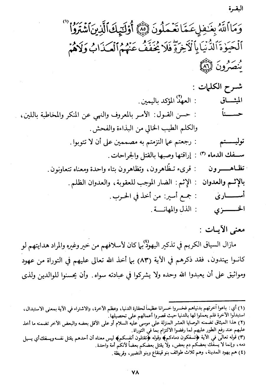 وَمَا اللهُ بِغَافِلٍ عَمَّا تَعْمَلُونَ (85) أُولَئِكَ الَّذِينَ اشْتَرَوُا1 الْحَيَاةَ الدُّنْيَا بِالآخِرَةِ فَلا يُخَفَّفُ عَنْهُمُ الْعَذَابُ وَلا هُمْ يُنْصَرُون (86) }