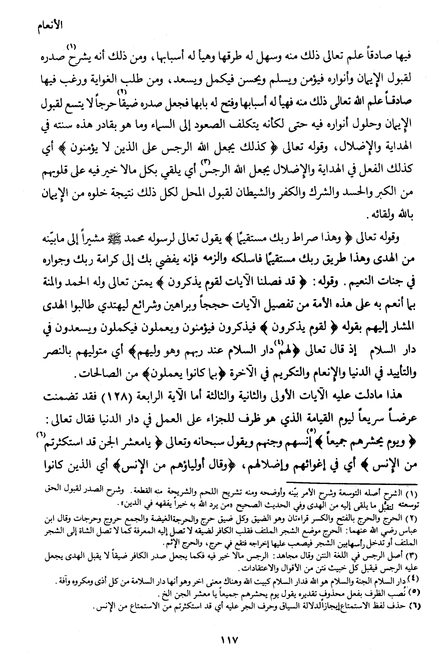 هذا ما دلت عليه الآيات الأولى والثانية والثالثة أما الآية الرابعة (128) فقد تضمنت عرضاً سريعاً ليوم القيامة الذي هو ظرف للجزاء على العمل في دار الدنيا فقال تعالى: {ويوم يحشرهم جميعاً} 5 إنسهم وجنهم ويقول سبحانه وتعالى {يا معشر الجن قد استكثرتم6 من الإنس} أي في إغوائهم وإضلالهم، {وقال أولياؤهم من الإنس} أي الذين كانوا