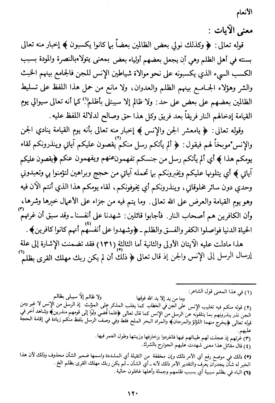 هذا ما دلت عليه الآيتان الأولى والثانية أما الثالثة (131) فقد تضمنت الإشارة إلى علة إرسال الرسل إلى الإنس والجن إذ قال تعالى {ذلك5 أن لم يكن ربك مهلك القرى بظلم6