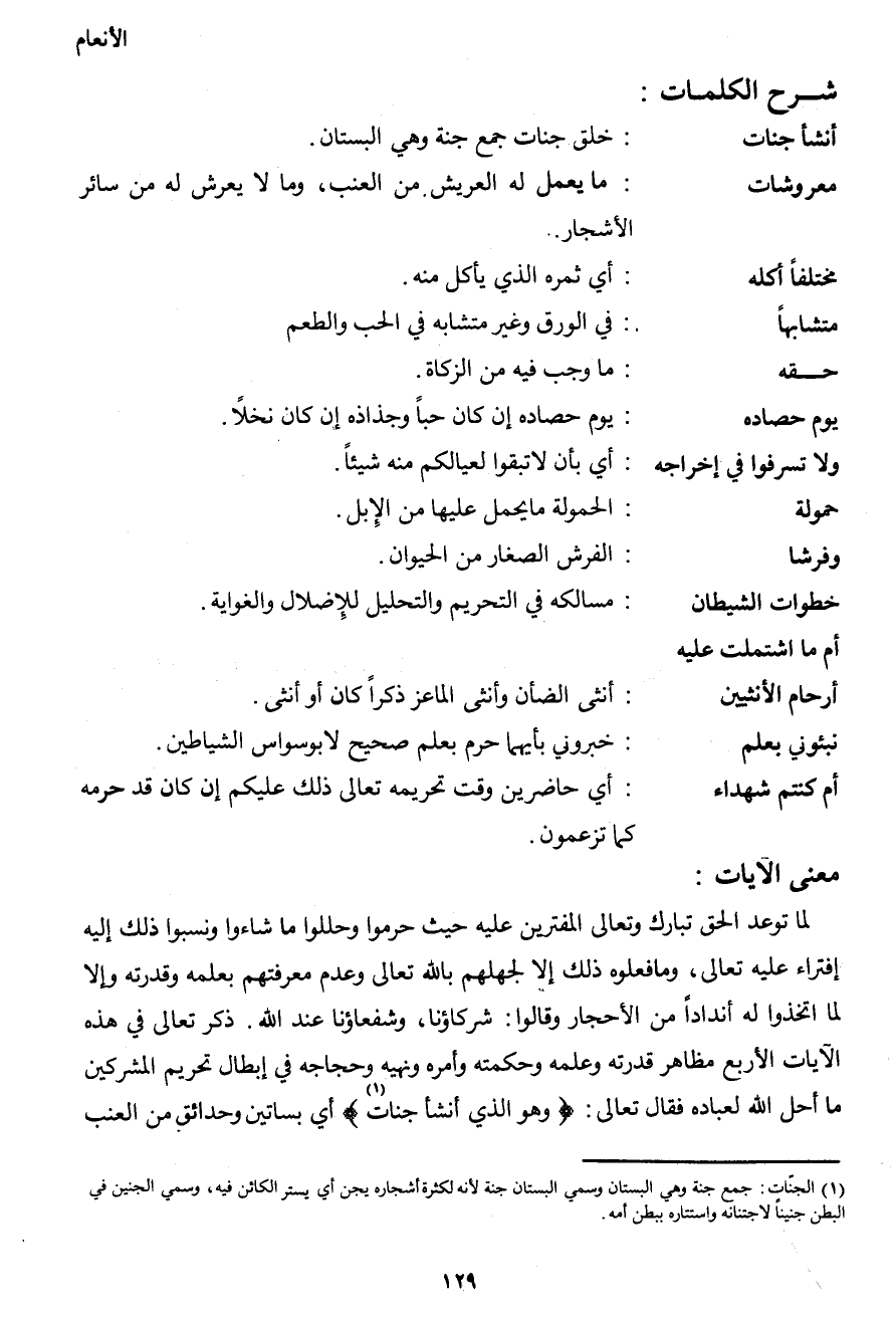 1 الجنّات: جمع جنة وهي البستان وسمي البستان جنة لأنه لكثرة أشجاره يجن أي يستر الكائن فيه، وسمي الجنين في البطن جنيناً لاجتنانه واستتاره ببطن أمه.