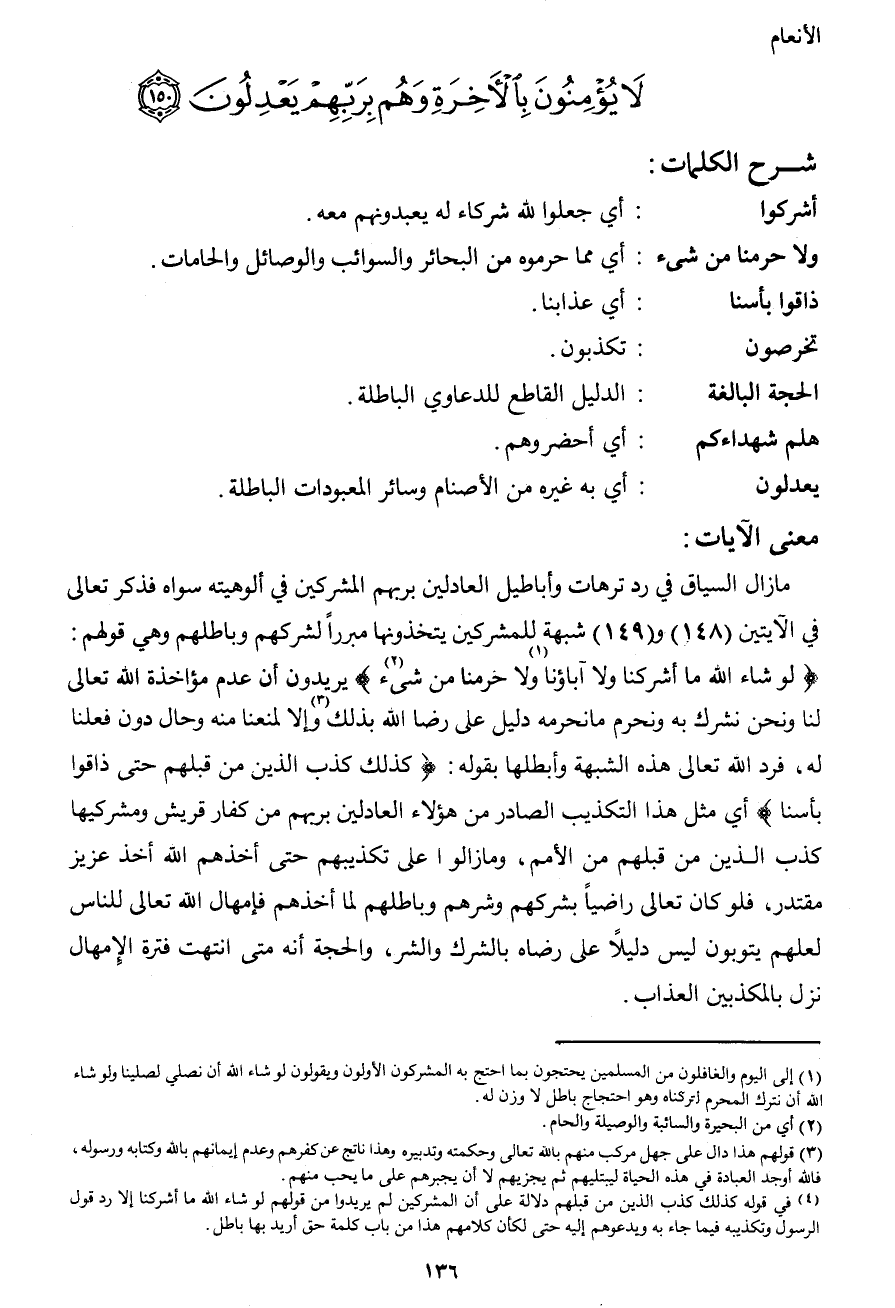 لاَ يُؤْمِنُونَ بِالآخِرَةِ وَهُم بِرَبِّهِمْ يَعْدِلُونَ (150)