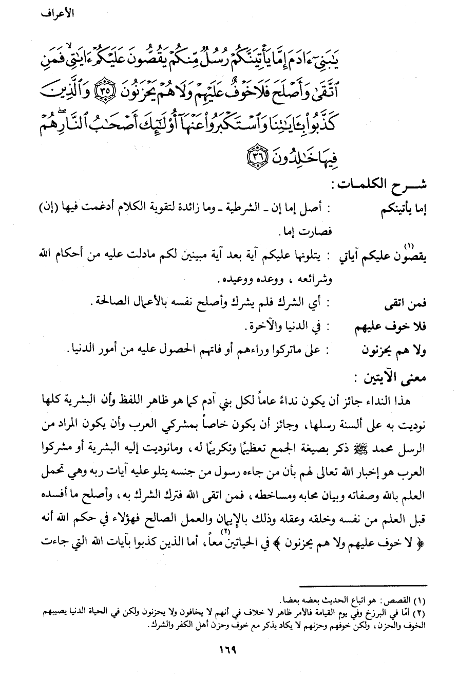 يَا بَنِي آدَمَ إِمَّا يَأْتِيَنَّكُمْ رُسُلٌ مِّنكُمْ يَقُصُّونَ عَلَيْكُمْ آيَاتِي فَمَنِ اتَّقَى وَأَصْلَحَ فَلاَ خَوْفٌ عَلَيْهِمْ وَلاَ هُمْ يَحْزَنُونَ (35) وَالَّذِينَ كَذَّبُواْ بِآيَاتِنَا وَاسْتَكْبَرُواْ عَنْهَا أُوْلََئِكَ أَصْحَابُ النَّارِ هُمْ فِيهَا خَالِدُونَ (36)