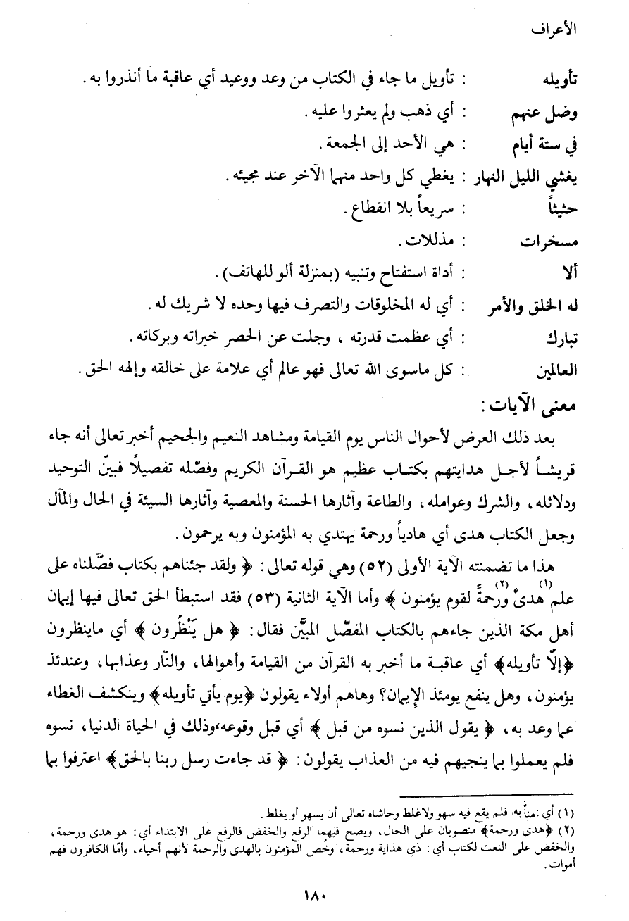 هذا ما تضمنته الآية الأولى (52) وهي قوله تعالى: {ولقد جئناهم بكتاب فصَّلناه على علم1 هدىً2 ورحمةً لقوم يؤمنون} وأما الآية الثانية (53) فقد استبطأ الحق تعالى فيها إيمان أهل مكة الذين جاءهم بالكتاب المفصّل المبيَّن فقال: {هل يَنْظُرون} أي ما ينظرون {إلاّ تأويله} أي عاقبة ما أخبر به القرآن من القيامة وأهوالها، والنار وعذابها، وعندئذ يؤمنون، وهل ينفع يومئذ الإيمان؟ وهاهم أولاء يقولون {يوم يأتي تأويله} وينكشف الغطاء عما وعد به، {يقول الذين نسوه من قبل} أي قبل وقوعه، وذلك في الحياة الدنيا، نسوه فلم يعملوا بما ينجيهم فيه من العذاب يقولون: {قد جاءت رسل ربنا بالحق} اعترفوا بما