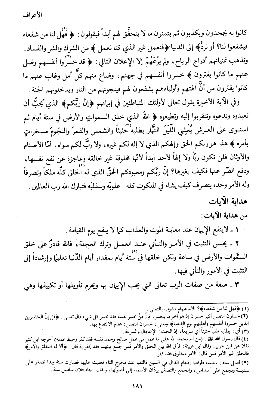 وفي الآية الأخيرة يقول تعالى لأولئك المتباطئين في إيمانهم {إنَّ ربَّكم} الذي يُحبُّ أن تعبدوه وتدعوه وتتقربوا إليه وتطيعوه {اللهُ الذي خلق السموات والأرض في ستة أيام ثم استوى على العرش يُغْشِي اللّيْلَ النَّهار يطلبه3 حثيثاً والشمس والقمرَ والنجّومَ مسخراتٍ بأمره} هذا هو ربكم الحق وإلهكم الذي لا إله لكم غيره، ولا ربَّ لكم سواه، أمّا الأصنام والأوثان فلن تكون ربّاً ولا إلهاً لأحد أبداً لأنّها مخلوقة غير خالقة وعاجزة عن نفع نفسها، ودفع الضّر عنها فكيف بغيرها؟ إنّ ربّكم ومعبودكم الحقّ الذي له4 الخلق كلّه ملكاً وتصرفاً وله الأمر وحده يتصرف كيف يشاء في الملكوت كله. علويّه وسفليّه فتبارك الله رب العالمين.