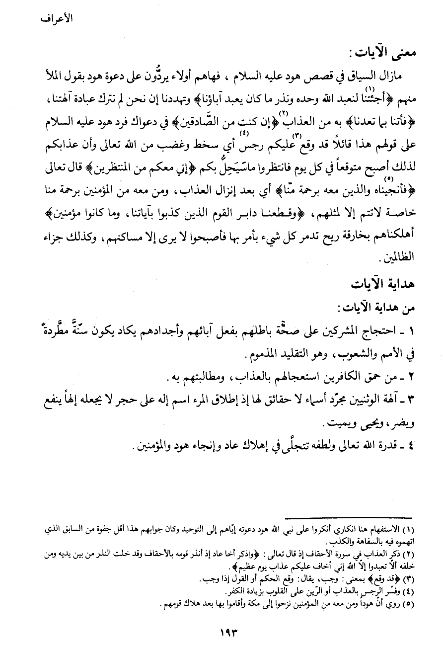 ما زال السياق في قصص هود عليه السلام، فهاهم أولاء يردُّون على دعوة هود بقول الملأ منهم {أجئتنا1 لنعبد الله وحده ونذر ما كان يعبد آباؤنا} وتهددنا إن نحن لم نترك عبادة آلهتنا، {فأتنا بما تعدنا} به من العذاب2 {إن كنت من الصَّادقين} في دعواك فرد هود عليه السلام على قولهم هذا قائلاً قد وقع3 عليكم رجس4 أي سخط وغضب من الله تعالى وأن عذابكم لذلك أصبح متوقعاً في كل يوم فاضطروا ما سَيَحِلٌّ بكم {إني معكم من المنتظرين} قال تعالى {فأنجيناه5 والذين معه برحمة منّا} أي بعد إنزال العذاب، ومن معه من المؤمنين برحمة منا خاصة لا تتم إلا لمثلهم، {وقطعنا دابر القوم الذين كذبوا بآياتنا، وما كانوا مؤمنين} أهلكناهم بخارقة ريح تدمر كل شيء بأمر بها فأصبحوا لا يرى إلا مساكنهم، وكذلك جزاء الظالمين.
