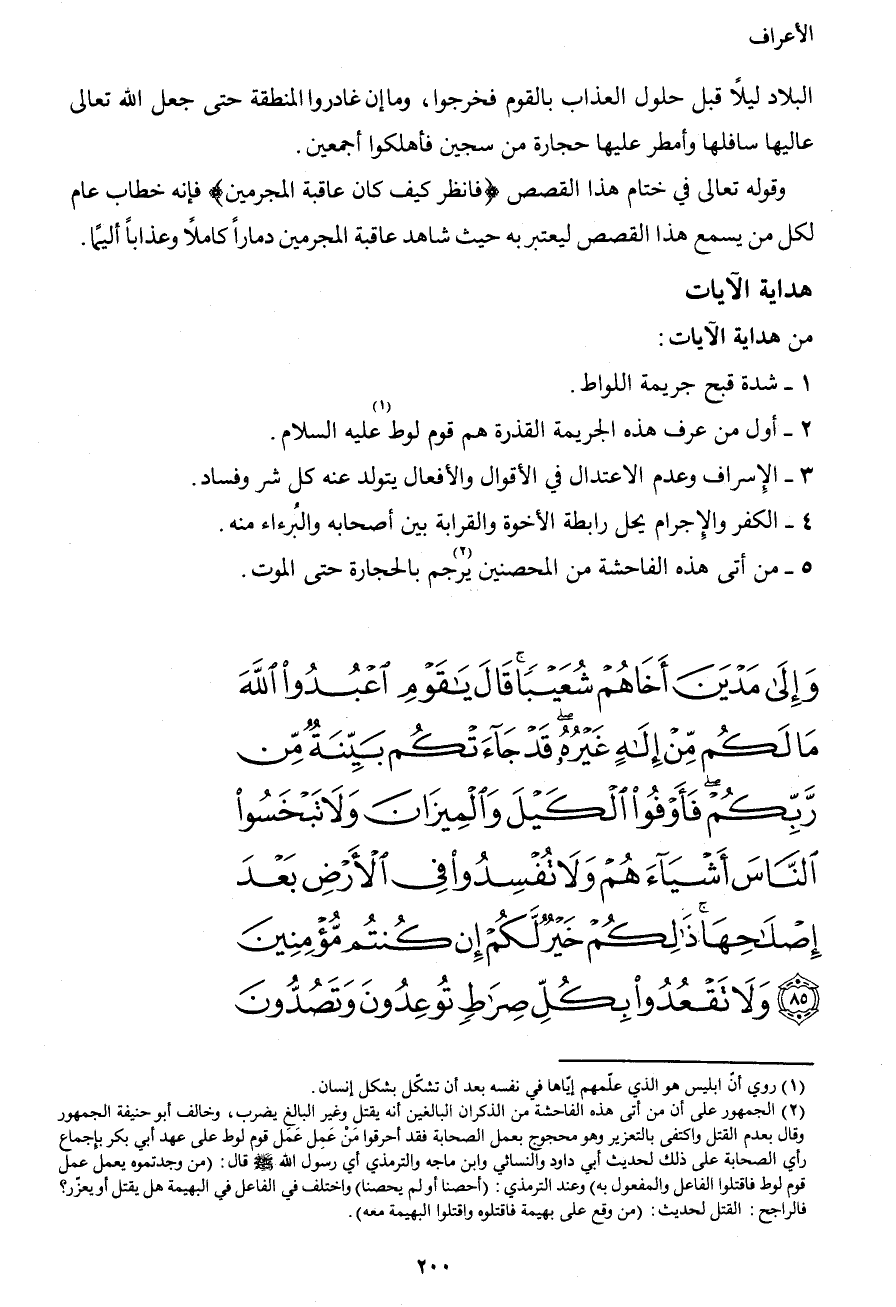 وَإِلَى مَدْيَنَ أَخَاهُمْ شُعَيْبًا قَالَ يَا قَوْمِ اعْبُدُواْ اللهَ مَا لَكُم مِّنْ إِلَهٍ غَيْرُهُ قَدْ جَاءتْكُم بَيِّنَةٌ مِّن رَّبِّكُمْ فَأَوْفُواْ الْكَيْلَ وَالْمِيزَانَ وَلاَ تَبْخَسُواْ النَّاسَ أَشْيَاءهُمْ وَلاَ تُفْسِدُواْ فِي الأَرْضِ بَعْدَ إِصْلاَحِهَا ذَلِكُمْ خَيْرٌ لَّكُمْ إِن كُنتُم مُّؤْمِنِينَ (85) وَلاَ تَقْعُدُواْ بِكُلِّ صِرَاطٍ تُوعِدُونَ وَتَصُدُّونَ