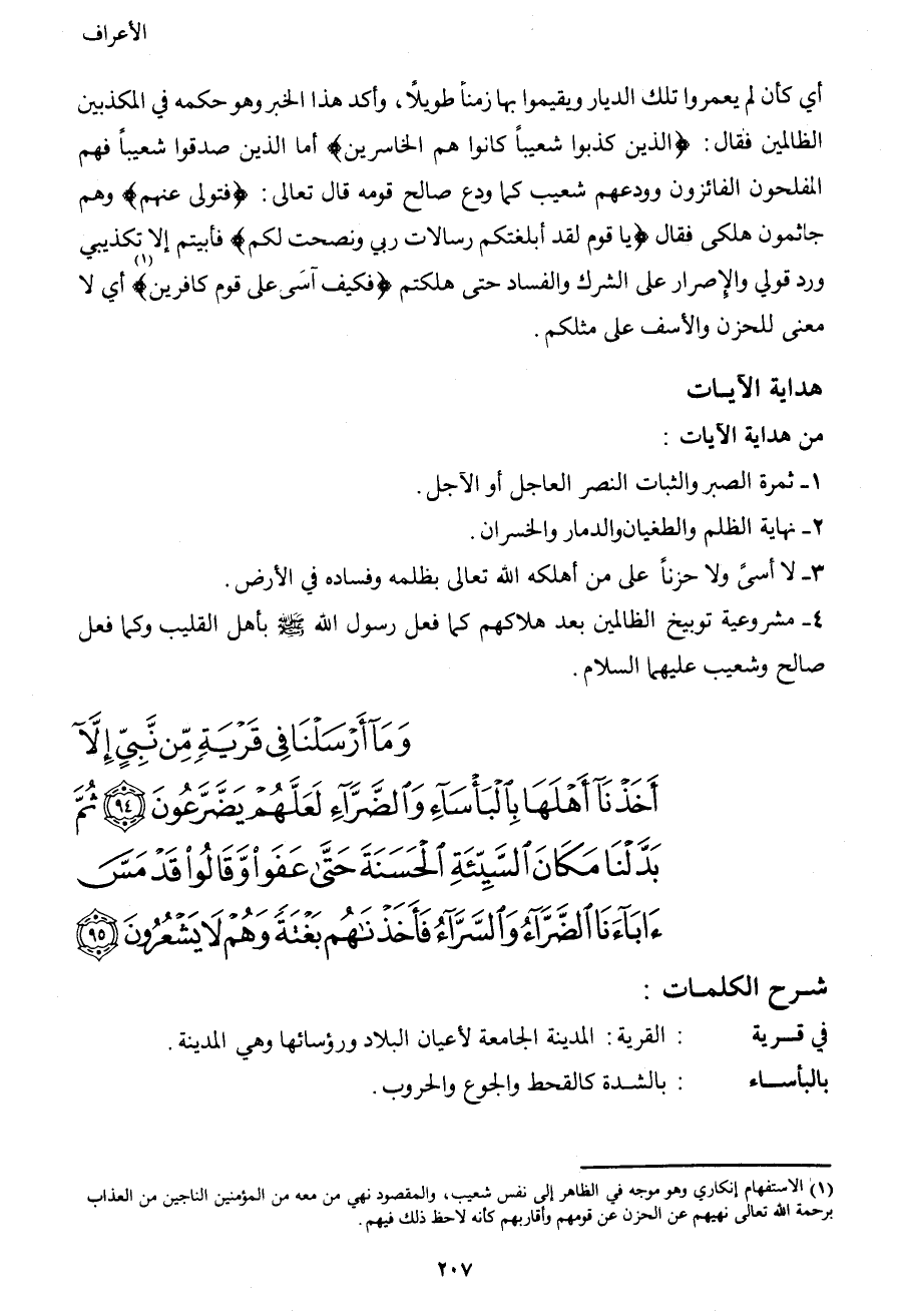 وَمَا أَرْسَلْنَا فِي قَرْيَةٍ مِّن نَّبِيٍّ إِلاَّ أَخَذْنَا أَهْلَهَا بِالْبَأْسَاء وَالضَّرَّاء لَعَلَّهُمْ يَضَّرَّعُونَ (94) ثُمَّ بَدَّلْنَا مَكَانَ السَّيِّئَةِ الْحَسَنَةَ حَتَّى عَفَواْ وَّقَالُواْ قَدْ مَسَّ آبَاءنَا الضَّرَّاء وَالسَّرَّاء فَأَخَذْنَاهُم بَغْتَةً وَهُمْ لاَ يَشْعُرُونَ (95)