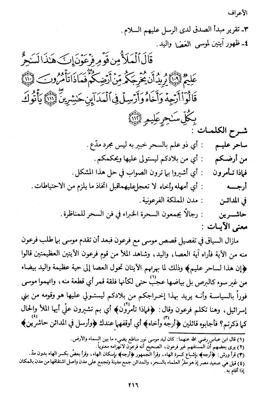 قَالَ الْمَلأُ مِن قَوْمِ فِرْعَوْنَ إِنَّ هَذَا لَسَاحِرٌ عَلِيمٌ (109) يُرِيدُ أَن يُخْرِجَكُم مِّنْ أَرْضِكُمْ فَمَاذَا تَأْمُرُونَ (110) قَالُواْ أَرْجِهْ وَأَخَاهُ وَأَرْسِلْ فِي الْمَدَآئِنِ حَاشِرِينَ (111) يَأْتُوكَ بِكُلِّ سَاحِرٍ عَلِيمٍ (112)