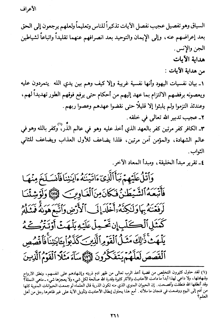 وَاتْلُ عَلَيْهِمْ نَبَأَ الَّذِيَ آتَيْنَاهُ آيَاتِنَا فَانسَلَخَ مِنْهَا فَأَتْبَعَهُ الشَّيْطَانُ فَكَانَ مِنَ الْغَاوِينَ (175) وَلَوْ شِئْنَا لَرَفَعْنَاهُ بِهَا وَلَكِنَّهُ أَخْلَدَ إِلَى الأَرْضِ وَاتَّبَعَ هَوَاهُ فَمَثَلُهُ كَمَثَلِ الْكَلْبِ إِن تَحْمِلْ عَلَيْهِ يَلْهَثْ أَوْ تَتْرُكْهُ يَلْهَث ذَّلِكَ مَثَلُ الْقَوْمِ الَّذِينَ كَذَّبُواْ بِآيَاتِنَا فَاقْصُصِ الْقَصَصَ لَعَلَّهُمْ يَتَفَكَّرُونَ (176) سَاء مَثَلاً الْقَوْمُ الَّذِينَ