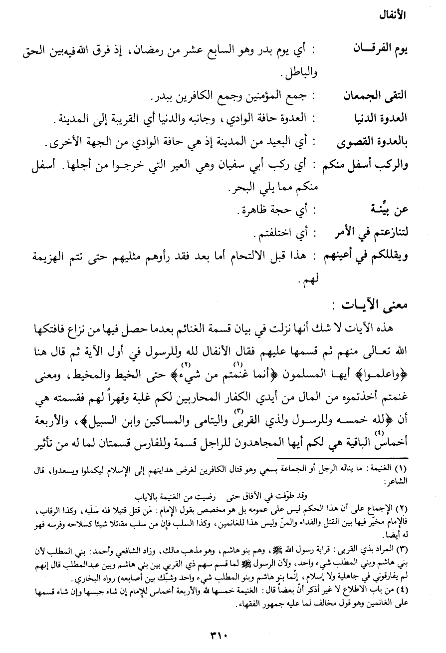 1 الغنيمة: ما يناله الرجل أو الجماعة بسعي وهو قتال الكافرين لغرض هدايتهم إلى الإسلام ليكملوا ويسعدوا، قال الشاعر: