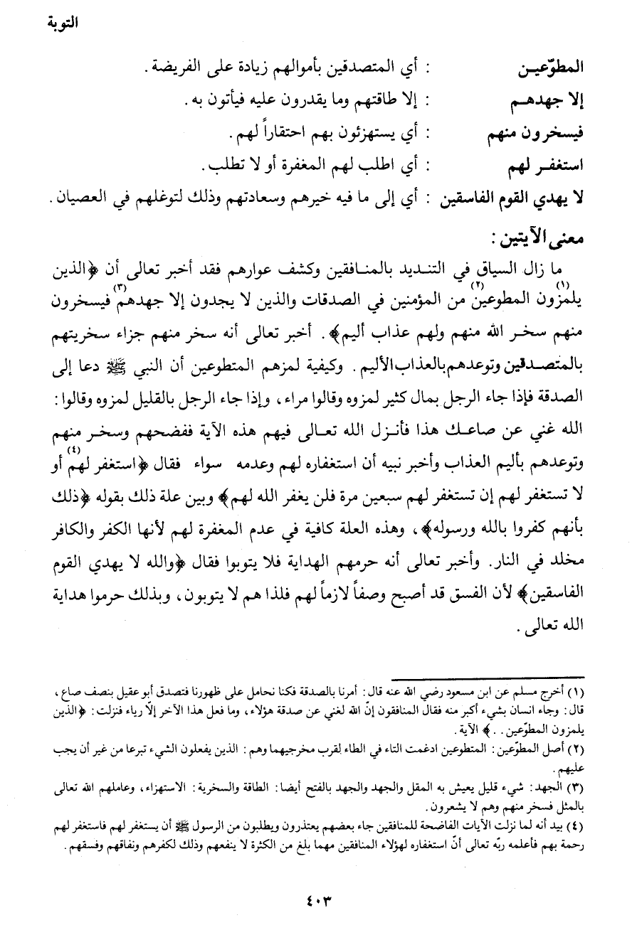 2 أصل المطوعين: المتطوعين أدغمت التاء في الطاء لقرب مخرجيهما وهم: الذين يفعلون الشيء تبرعاً من غير أن يجب عليهم.