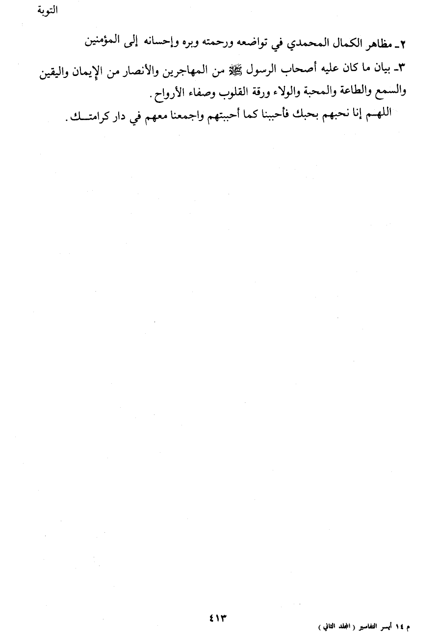 3- بيان ما كان عليه أصحاب الرسول صَلَّى اللهُ عَلَيْهِ وَسَلَّمَ من المهاجرين والأنصار من الإيمان واليقين والسمع والطاعة والمحبة والولاء ورقة القلوب وصفاء الأرواح.