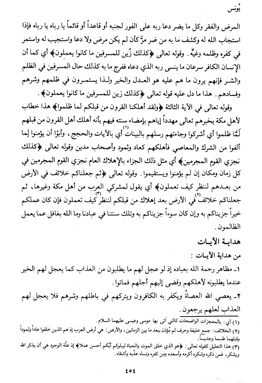 المرض والفقر وكل ما يضر دعا ربه على الفور لجنبه أو قاعداً أو قائماً يا رباه يا رباه فإذا استجاب الله له وكشف ما به من ضر مرَّ كأن لم يكن مرض ولا دعا واستجيب له واستمر في كفره وظلمه وغيِّه. وقوله تعالى {كذلك زُين للمسرفين ما كانوا يعملون} أي كما أن الإنسان الكافر سرعان ما ينسى ربه الذي دعاه ففرج ما به كذلك حال المسرفين في الظلم والشر فإنهم يرون ما هم عليه هو العدل والخير ولذا يستمرون في ظلمهم وشرهم وفسادهم. هذا ما دل عليه قوله تعالى {كذلك زين للمسرفين ما كانوا يعملون} .