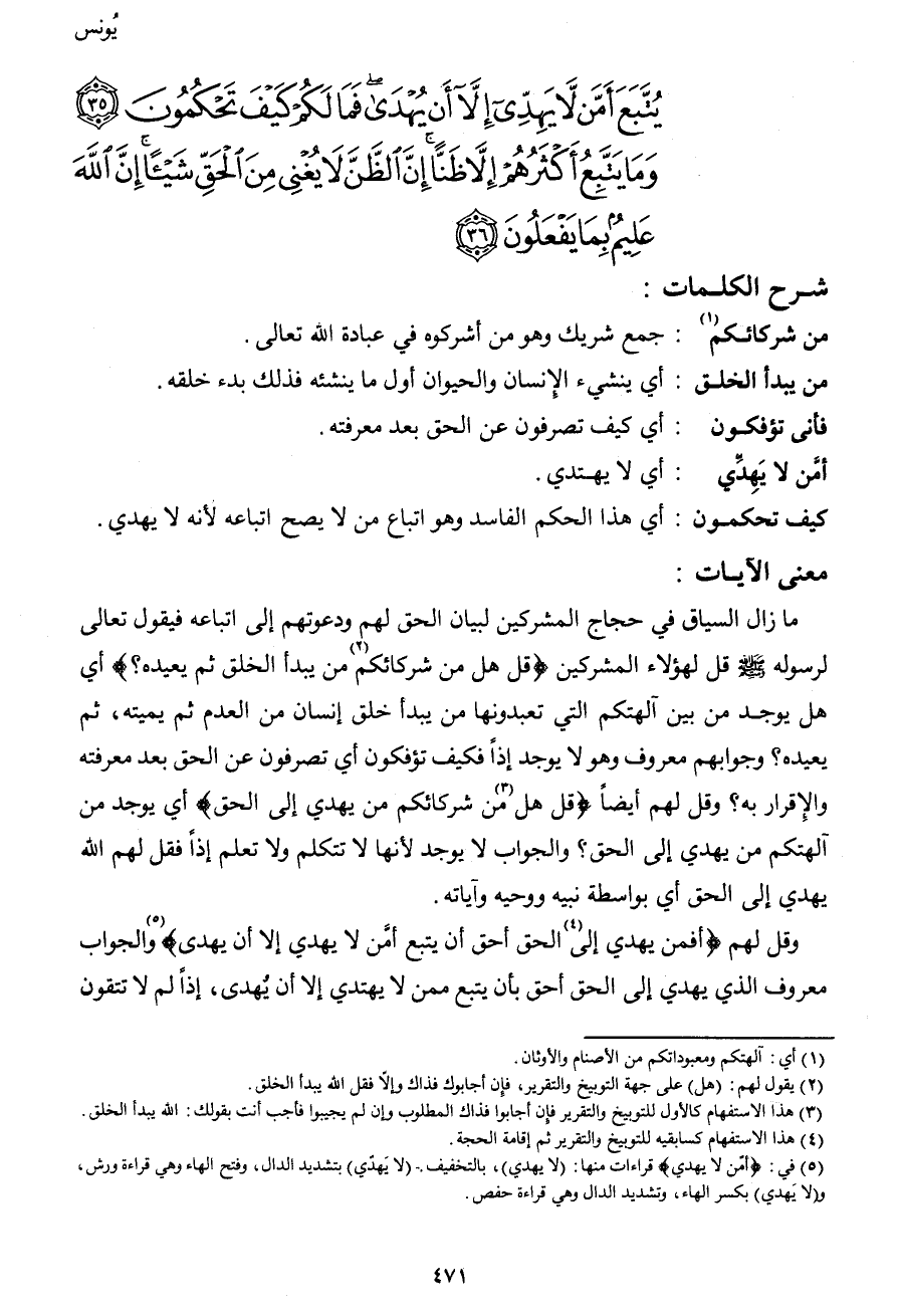 يُتَّبَعَ أَمَّن لاَّ يَهِدِّيَ إِلاَّ أَن يُهْدَى فَمَا لَكُمْ كَيْفَ تَحْكُمُونَ (35) وَمَا يَتَّبِعُ أَكْثَرُهُمْ إِلاَّ ظَنًّا إَنَّ الظَّنَّ لاَ يُغْنِي مِنَ الْحَقِّ شَيْئًا إِنَّ اللهَ عَلَيمٌ بِمَا يَفْعَلُونَ (36)