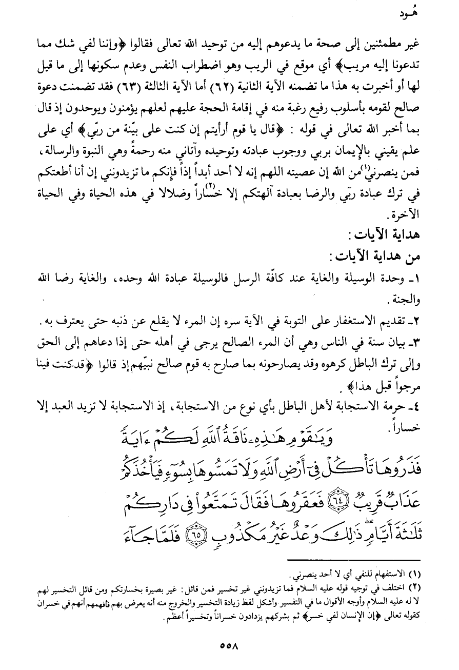 وَيَا قَوْمِ هَذِهِ نَاقَةُ اللهِ لَكُمْ آيَةً فَذَرُوهَا تَأْكُلْ فِي أَرْضِ اللهِ وَلاَ تَمَسُّوهَا بِسُوءٍ فَيَأْخُذَكُمْ عَذَابٌ قَرِيبٌ (64) فَعَقَرُوهَا فَقَالَ تَمَتَّعُواْ فِي دَارِكُمْ ثَلاَثَةَ أَيَّامٍ ذَلِكَ وَعْدٌ غَيْرُ مَكْذُوبٍ (65) فَلَمَّا جَاء