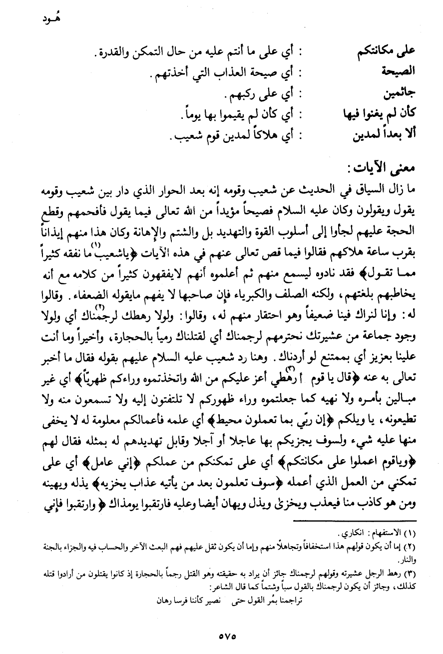 3 رهط الرجل عشيرته وقولهم لرجمناك جائز أن يراد به حقيقته وهو القتل رجماً بالحجارة إذ كانوا يقتلون من أرادوا قتله كذلك، وجائز أن يكون لرجمناك بالقول سباً وشتماً كما قال الشاعر: