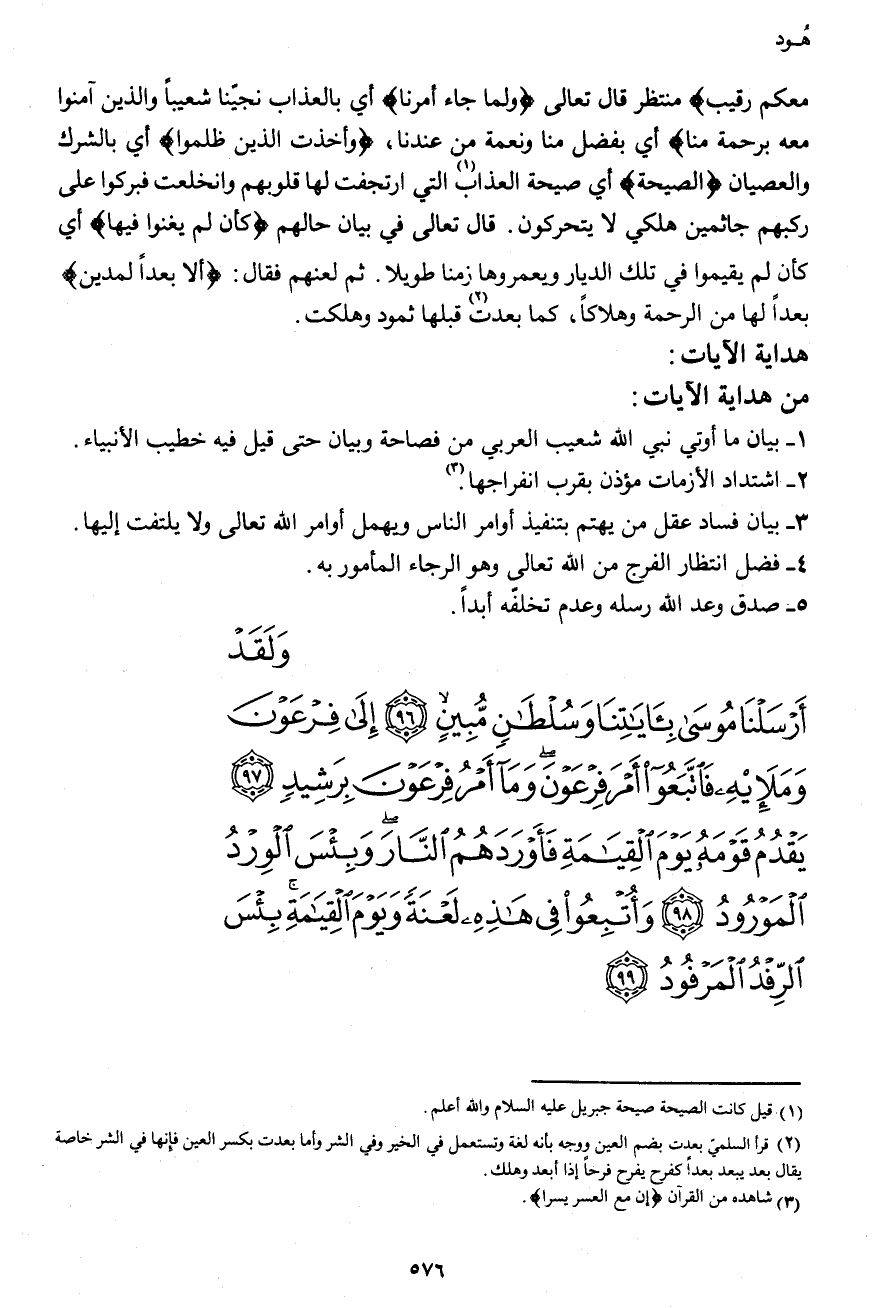 وَلَقَدْ أَرْسَلْنَا مُوسَى بِآيَاتِنَا وَسُلْطَانٍ مُّبِينٍ (96) إِلَى فِرْعَوْنَ وَمَلَئِهِ فَاتَّبَعُواْ أَمْرَ فِرْعَوْنَ وَمَا أَمْرُ فِرْعَوْنَ بِرَشِيدٍ (97) يَقْدُمُ قَوْمَهُ يَوْمَ الْقِيَامَةِ فَأَوْرَدَهُمُ النَّارَ وَبِئْسَ الْوِرْدُ الْمَوْرُودُ (98) وَأُتْبِعُواْ فِي هَذِهِ لَعْنَةً وَيَوْمَ الْقِيَامَةِ بِئْسَ الرِّفْدُ الْمَرْفُودُ (99)