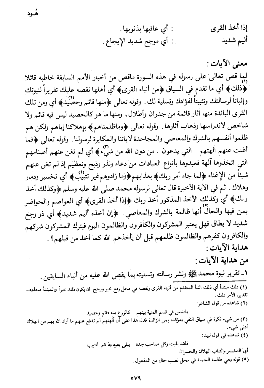 لما قص تعالى على رسوله في هذه السورة ما قص من أخبار الأمم السابقة خاطبه قائلا {1ذلك} أي ما تقدم في السياق {من أنباء القرى} أي أهلها نقصه عليك تقريراً لنبوتك وإثباتاً لرسالتك وتثبيتاً لفؤادك وتسلية لك. وقوله تعالى {منها قائم وحصيد2} أي ومن تلك القرى البائدة منها آثار قائمة من جدران وأطلال، ومنها ما هو كالحصيد ليس فيه قائم ولا شاخص لاندراسها وذهاب آثارها. وقوله تعالى {وما ظلمناهم} بإهلاكنا إياهم ولكن هم ظلموا أنفسهم بالشرك والمعاصي والمجاحدة لآياتنا والمكابرة لرسولنا. وقوله تعالى {فما أغنت عنهم آلهتهم التي يدعون من دون الله من شيء3} أي لم تغن عنهم أصنامهم التي اتخذوها آلهة فعبدوها بأنواع العبادات من دعاء ونذر وذبح وتعظيم إذ لم تغن عنهم شيئاً من الإغناء {لما جاء أمر ربك} بعذابهم {وما زادوهم غير تتبيب4} أي تخسير ودمار وهلاك. ثم في الآية الأخيرة قال تعالى لرسوله محمد صَلَّى اللهُ عَلَيْهِ وَسَلَّمَ {وكذلك أخذ ربك} أي وكذلك الأخذ المذكور أخذ ربك {إذا أخذ القرى} أي العواصم والحواضر بمن فيها والحال5 أنها ظالمة بالشرك والمعاصي. {إن أخذه أليم شديد} أي ذو وجع شديد لا يطاق فهل يعتبر المشركون والكافرون والظالمون اليوم فيترك المشركون شركهم والكافرون كفرهم والظالمون ظلمهم قبل أن يأخذهم الله كما أخذ من قبلهم؟.